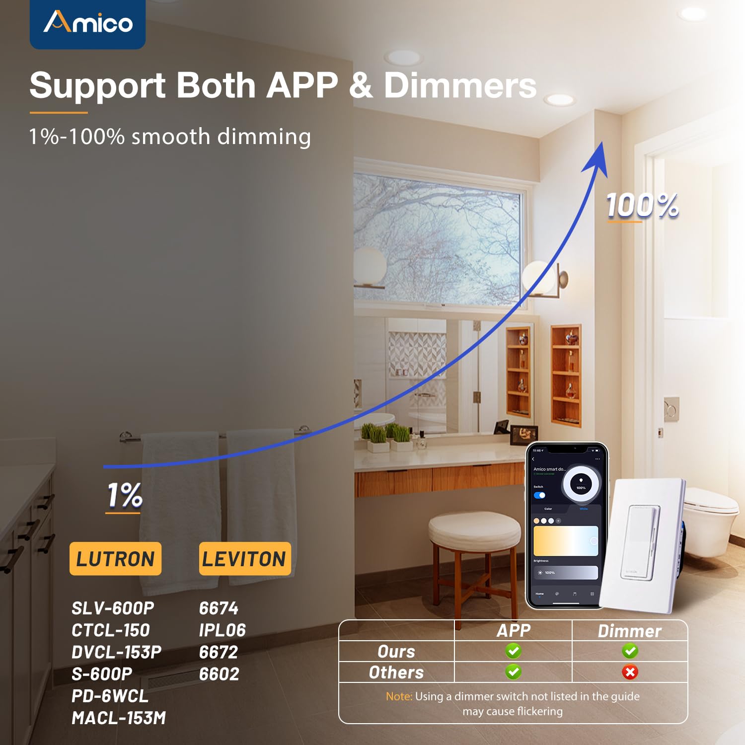 - Seamless Voice Control: Take charge of your lighting effortlessly with voice commands by connecting the Amico Recessed Smart Downlight to popular smart home assistants.