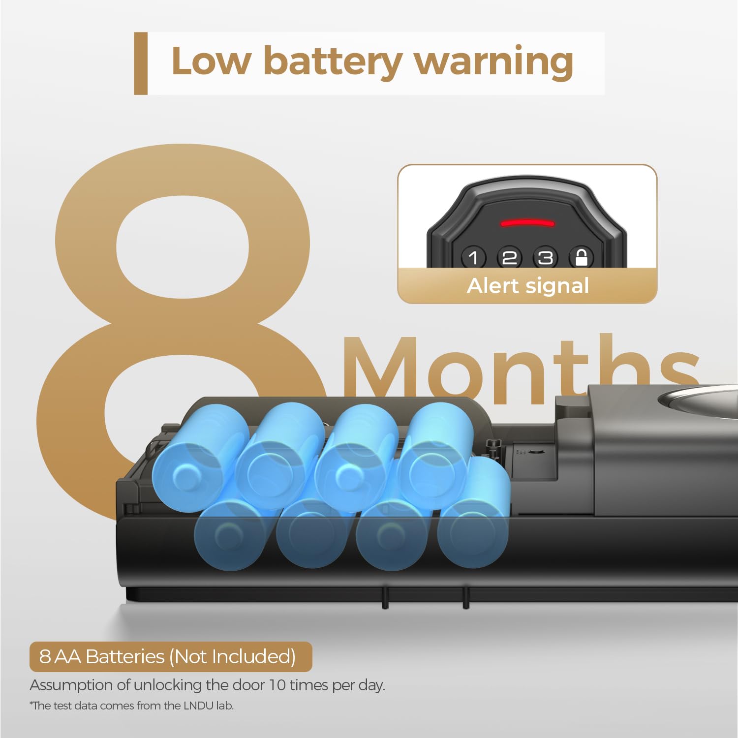 - 【Extended Power for Uninterrupted Operation】Equipped with 8 AA batteries delivering 9+ months of keyless entry functionality, the system proactively issues low-battery alerts through the app and keypad display. Never face emergency front door lock failures again.