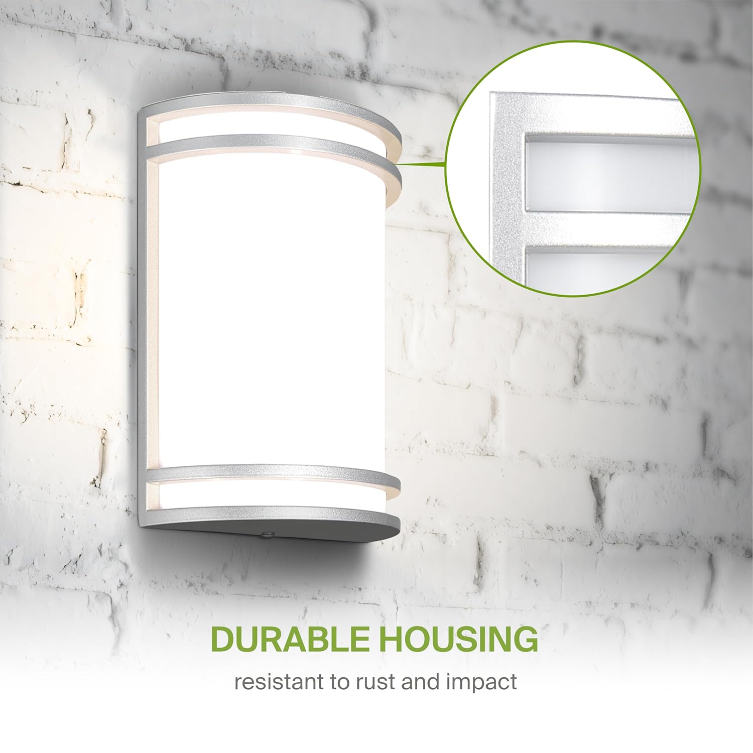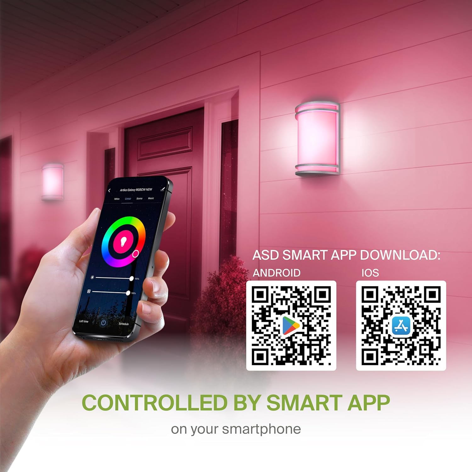 - MODERN DESIGN: ASD Outdoor LED Wall Sconce combines stylish multipurpose design with efficient lighting. The UV resistant PMMA lens with a 120° beam angle provides perfectly even light distribution. The fixture is compatible with Alexa and Google Assistant. NOTE: to download ASD SMART App please scan the QR code in product pictures.