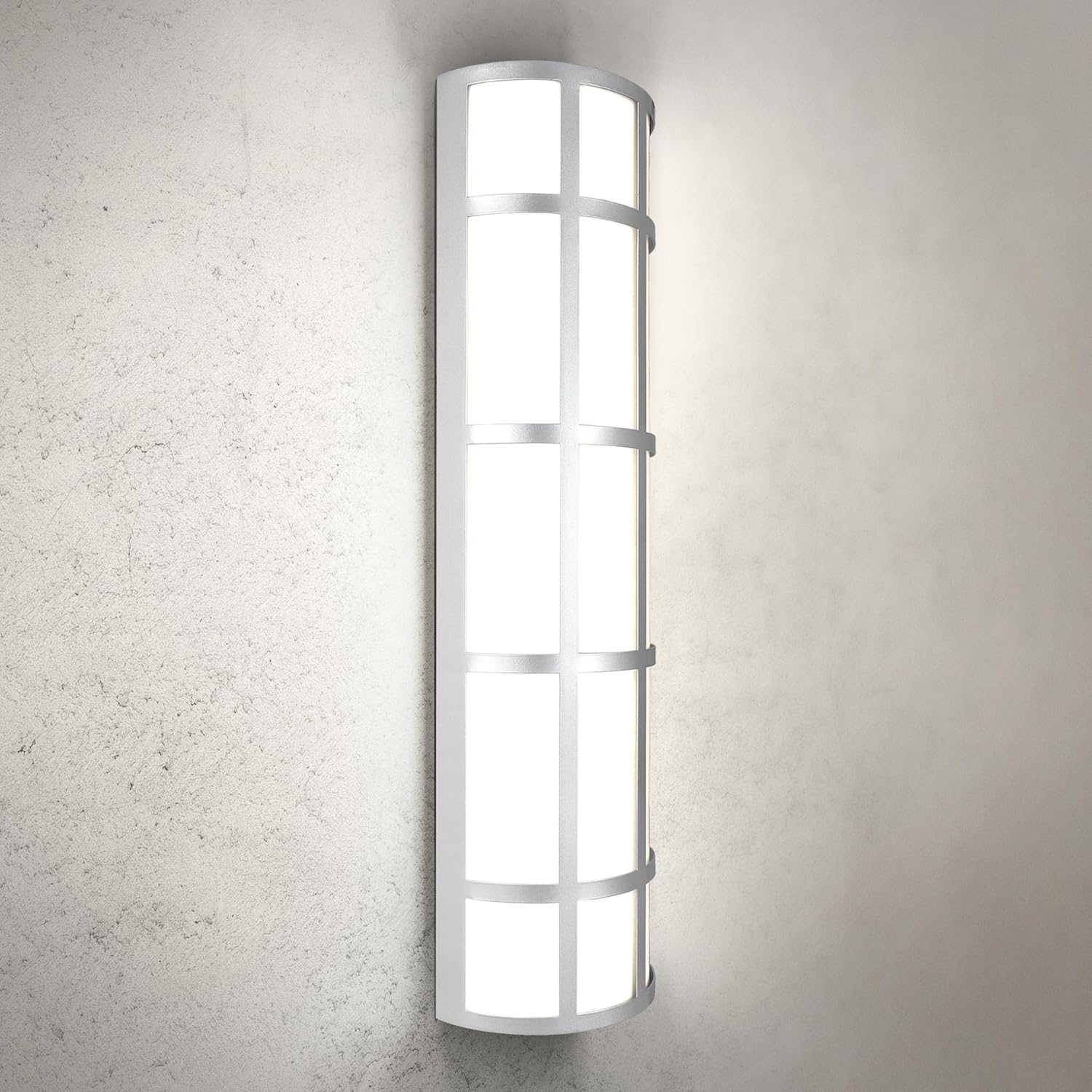 Photos: ASD 24 Inch LED Outdoor Wall Mount Light Fixture with Grid – Brushed Nickel Modern Wall Sconce – 25W 120-277V 3000K 4000K 5000K Adjustable – Dimmable Exterior Lights – Front… by ASD