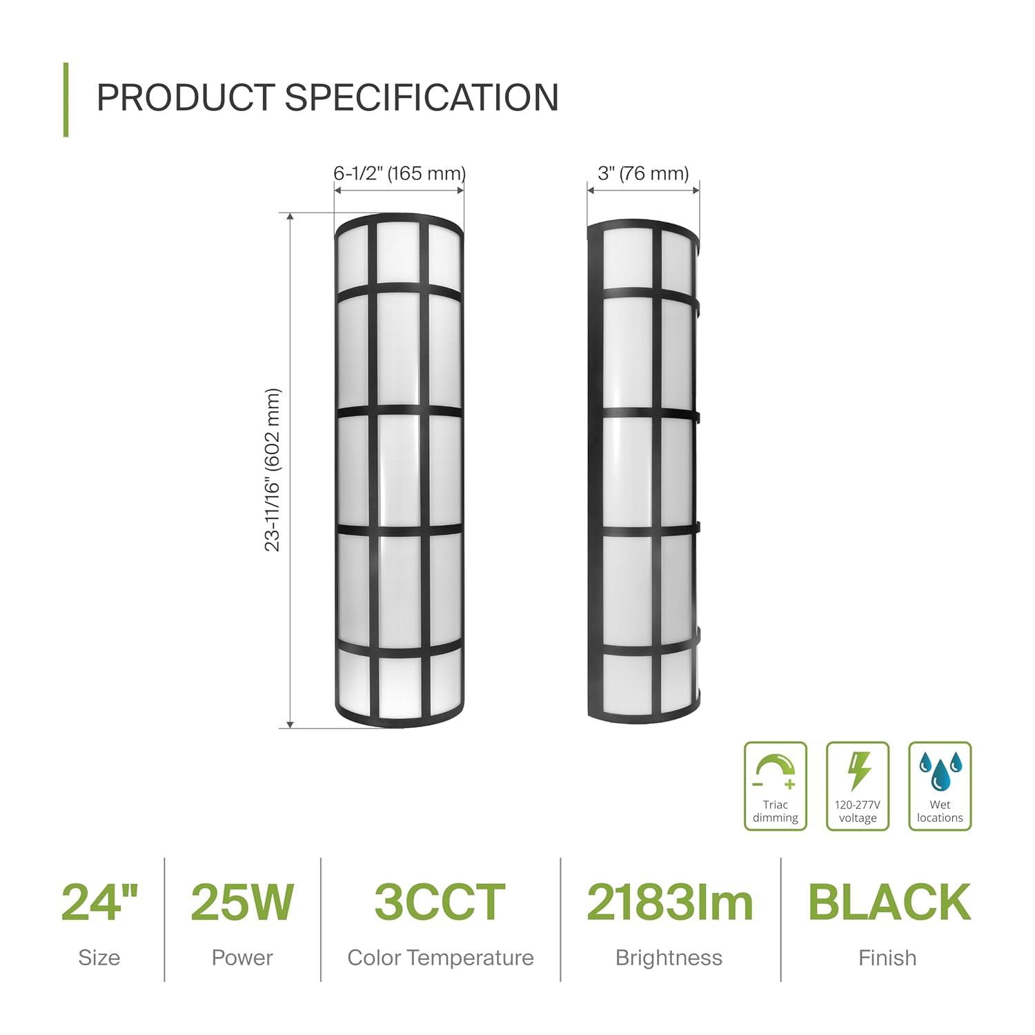 Specification: ASD 24 Inch LED Outdoor Wall Mount Light Fixture with Grid – Matte Black Modern Wall Sconce – 25W 120-277V 3000K 4000K 5000K Adjustable – Dimmable Exterior Lights – Front Door,… by ASD
