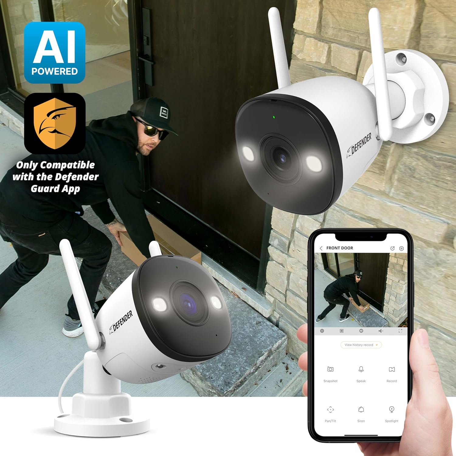Customer Favorite — discover the Defender AI Powered 4K Guard Pro 8MP WiFi 6/Bluetooth, Plug-in Power Wireless Security Camera Outdoor – Camera for Home Security with Smart AI Human Detection, Two-Way Talk,… by Defender, built for performance and designed for life in the United States.