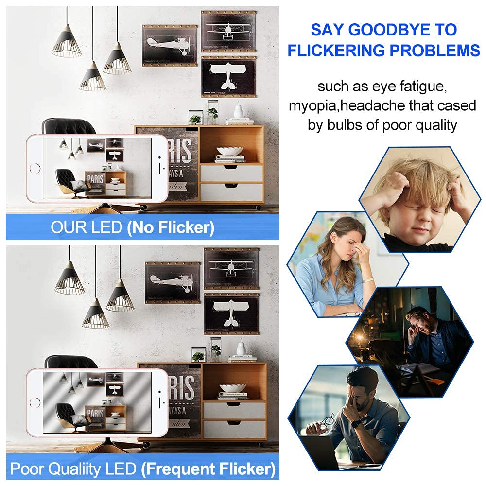 - 💡Eye-care & Eco-friendly: UL Listed! No flicker, no dazzle, no breakable parts, meanwhile very healthy to your eye. No lead or mercury, no IR radiation