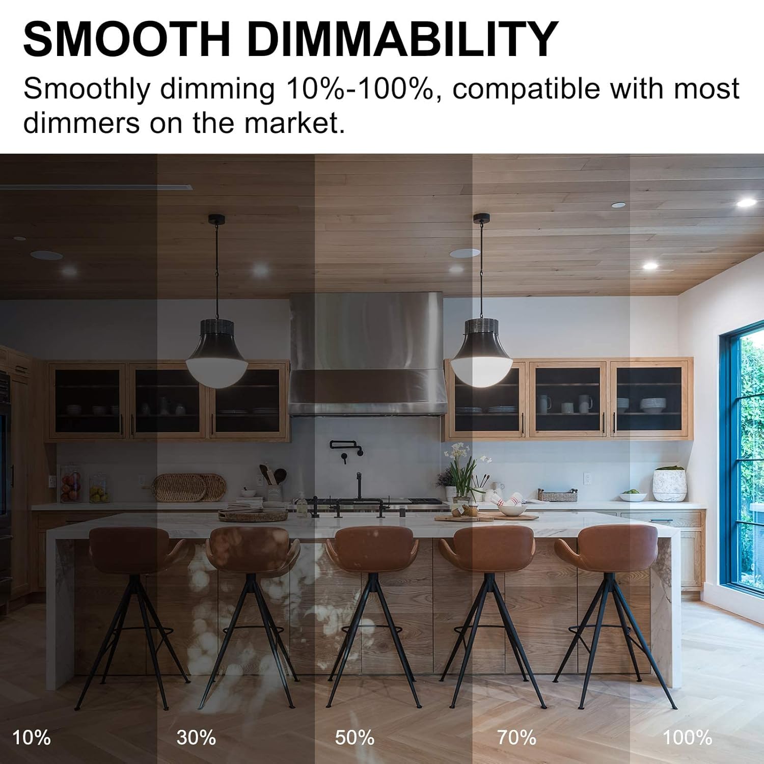 - 💡Dimmable: Seamless dimming capabilities from 10%-100%. Compatible with most dimmers in the market. Ideal for kitchen, living room, bedroom, bathroom and other damp location. Note: Not compatible with smart dimmers, Not compatible with 3-way touch lamp