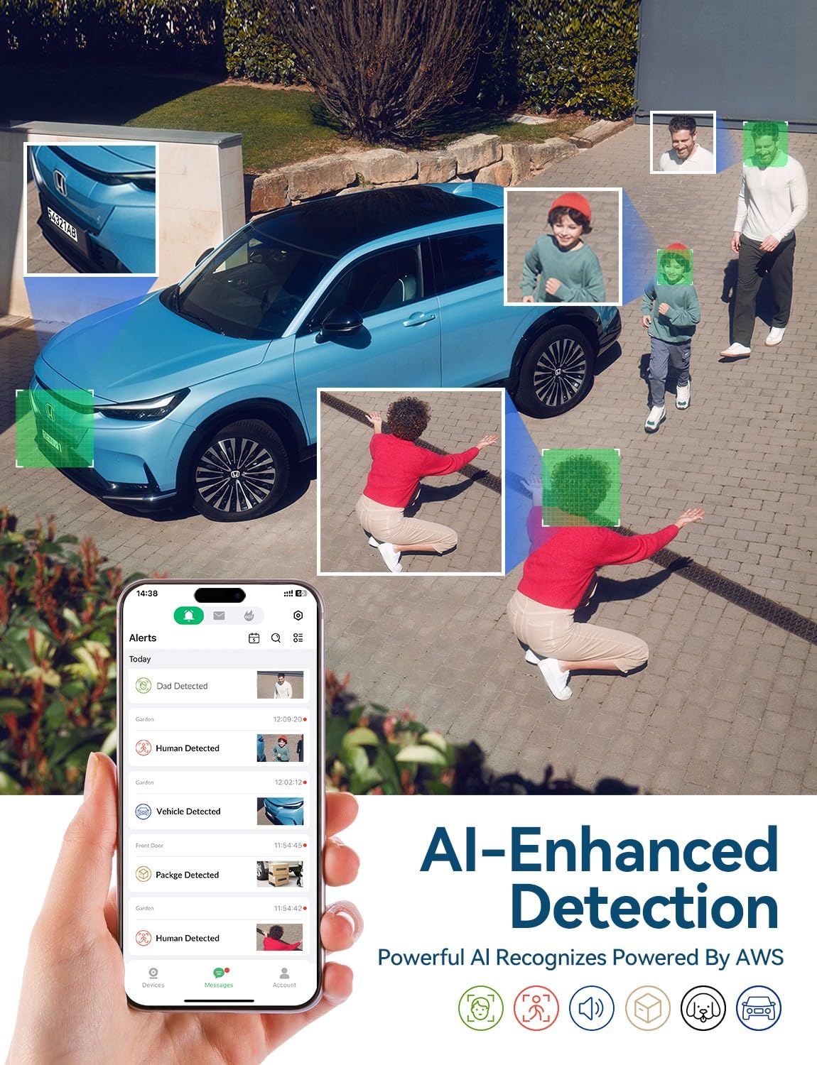 - 【Say GoodBye to Bad Guy】Stay ahead of the other security cameras with instant push notifications, emails, or FTP, triggered by movement, person, vehicle, or sound within your customized activity area. Armed with an integrated Top Class Light & Siren Alarm System, deter any unwanted guests with ease. Whether it’s a anyone entering your hotel or store, or a curious soul wandering through your garden, rest assured you’ll be the first to know.