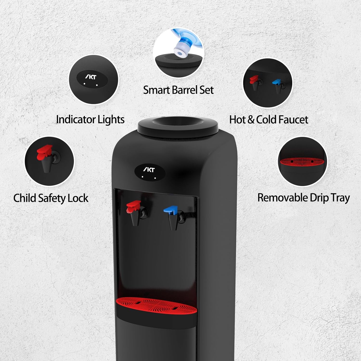 About IKT Water Dispenser, Top Loading Water Cooler with Compressor Cooling, Child Safety Lock, Energy Saving, ETL Approved Hot and Cold Water, Black