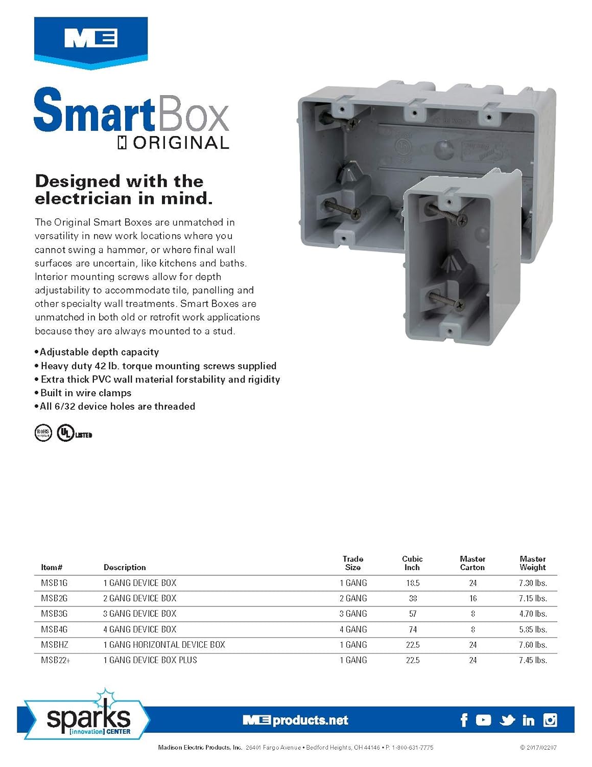 About Madison Electric Products MSB1G4PK MSB1G Smart Depth Adjustable Box, 1 Gang, 18.5 cu. in. Gray (Pack of 4)