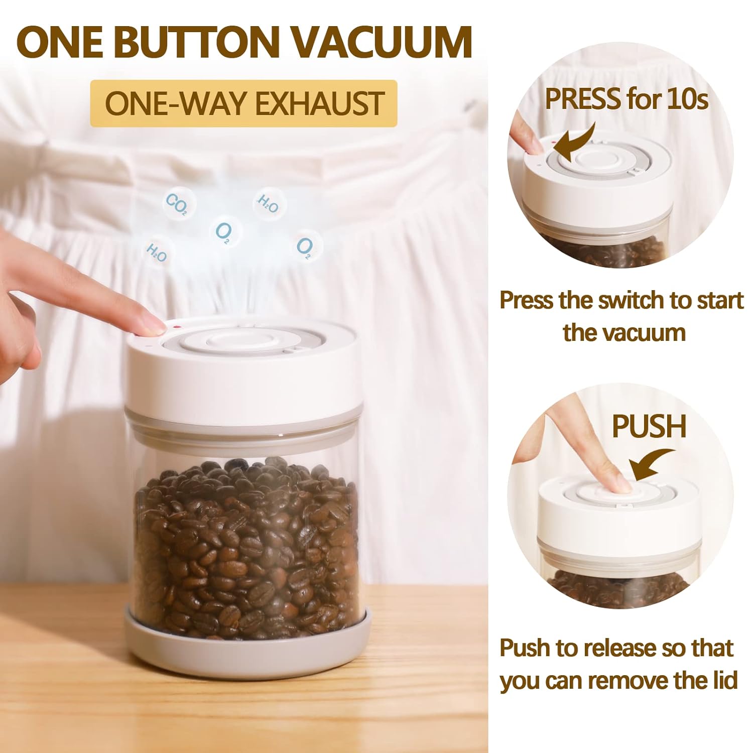 - 【SMART & LONG-LASTING FRESHNESS】This electric vacuum container continuously maintains low pressure & less oxygen in the jar, keeping food 5x longer dryness & freshness than traditional vacuum sealed containers / non-vacuum storage methods, which makes planning meals become an joy. When it is used as a coffee bean storage tank, brewing a cup of authentic coffee will no longer be a problem.