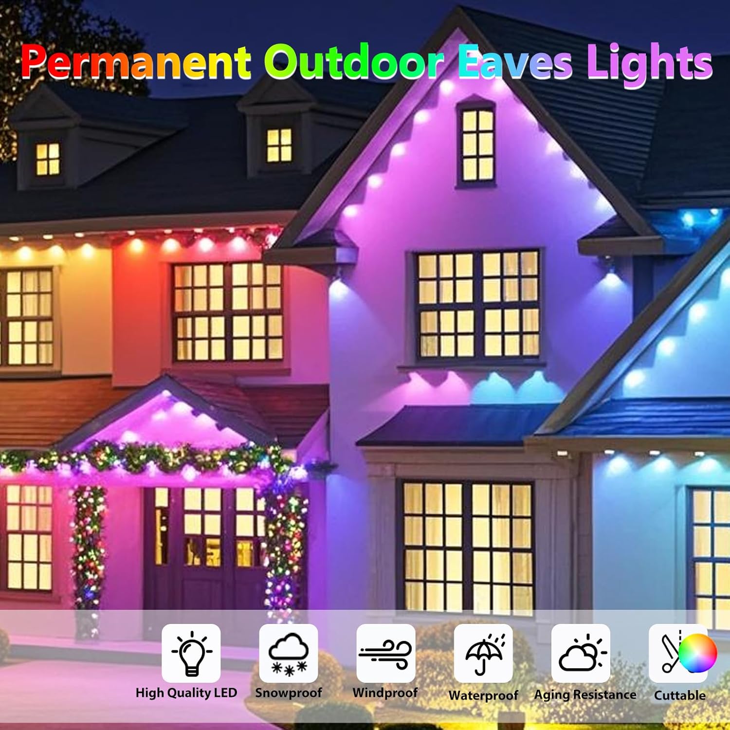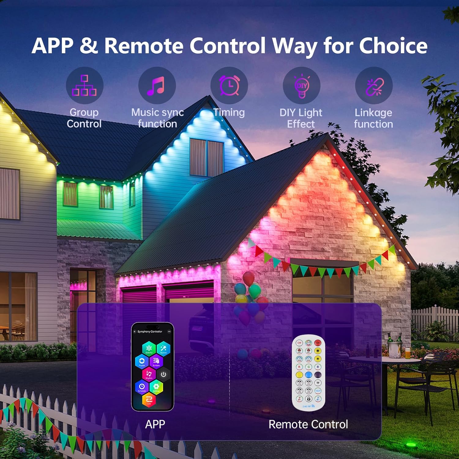 - 【Smart and Immersive Lighting Experience】: By the eave lights outdoor, you can custom 16millions color of your landscape lighting with the remote and mobile app controller. Effortlessly switch between a vast array of RGB dynamic modes, synchronizing lights with music, or creating dynamic light show