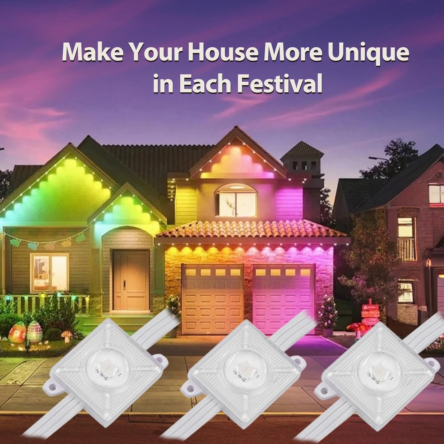 Photos: Outdoor Permanent Lights for House 100ft, Smart Halloween Lights with 60LEDs RGB IP67 Waterproof, Support with Alexa &Google Assistant Smart Voice Control,Sync to Music, DIY… by ADLEDQYGD