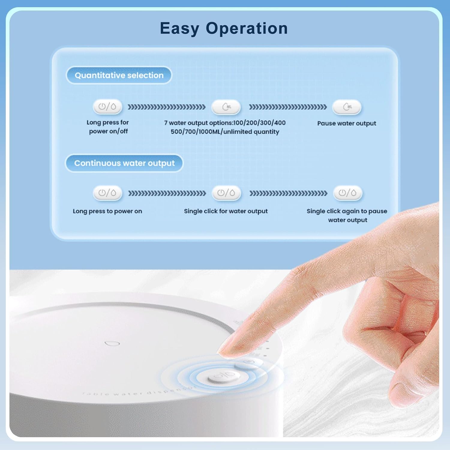 - Versatile and Convenient-Electric water dispenser provides intelligent pumping function with 6 levels of water dispensing (100~1000ml) and 1 level of unlimited water dispensing for choice. Automatically stops when the desired amount of water is reached. Adaptable and easy to use