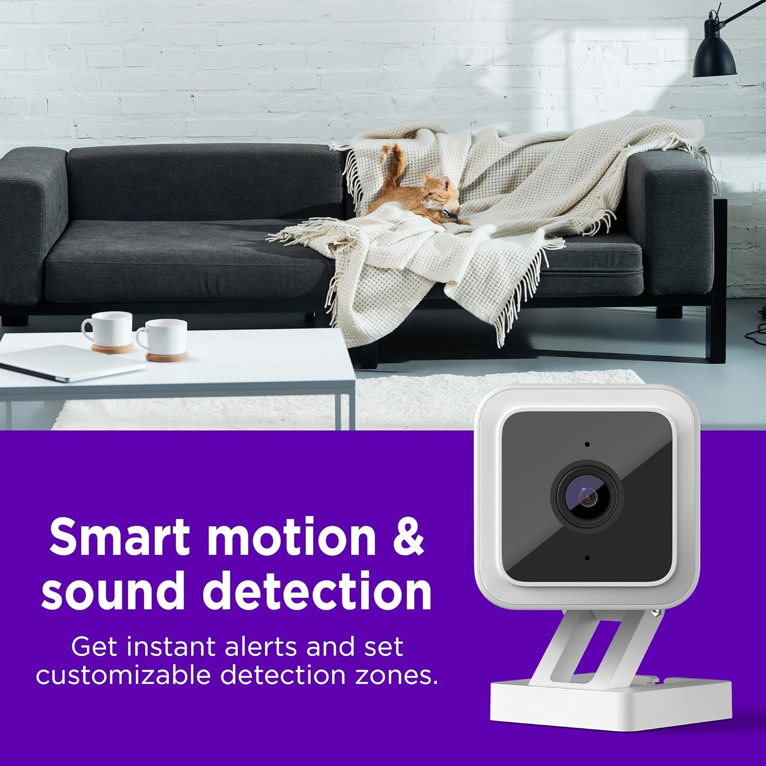- Smart alerts: Get notified within seconds of your camera detecting motion or sound. You can set customized detection zones to reduce false alerts for curtains blowing in the wind.