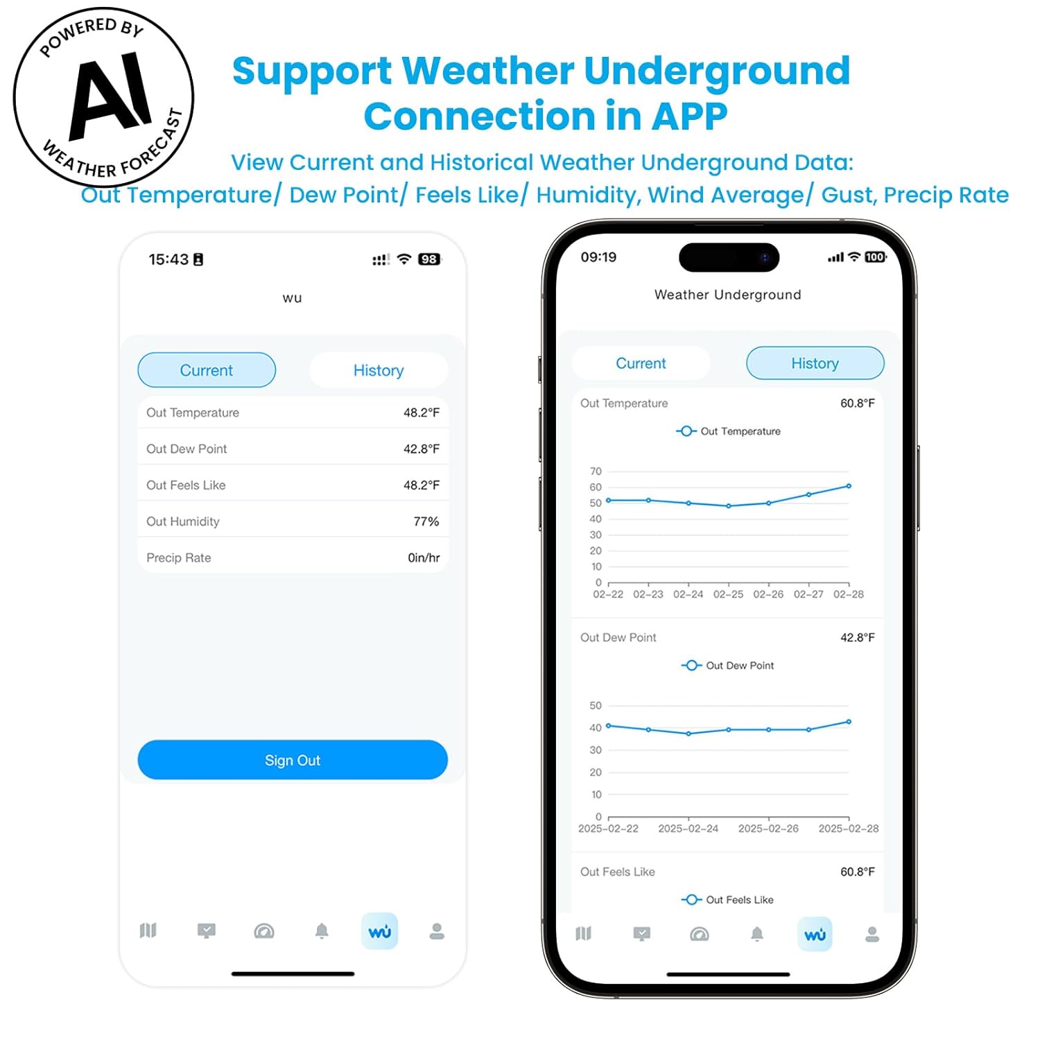 - 𝗪𝗶𝗳𝗶 𝗪𝗲𝗮𝘁𝗵𝗲𝗿 𝗨𝗻𝗱𝗲𝗿𝗴𝗿𝗼𝘂𝗻𝗱: It’s easy to sync with Weather Underground. Data transmission with the global weather network W.U. can be accessed within the Weatherseed APP. You can easily save, compare and evaluate all weather data.