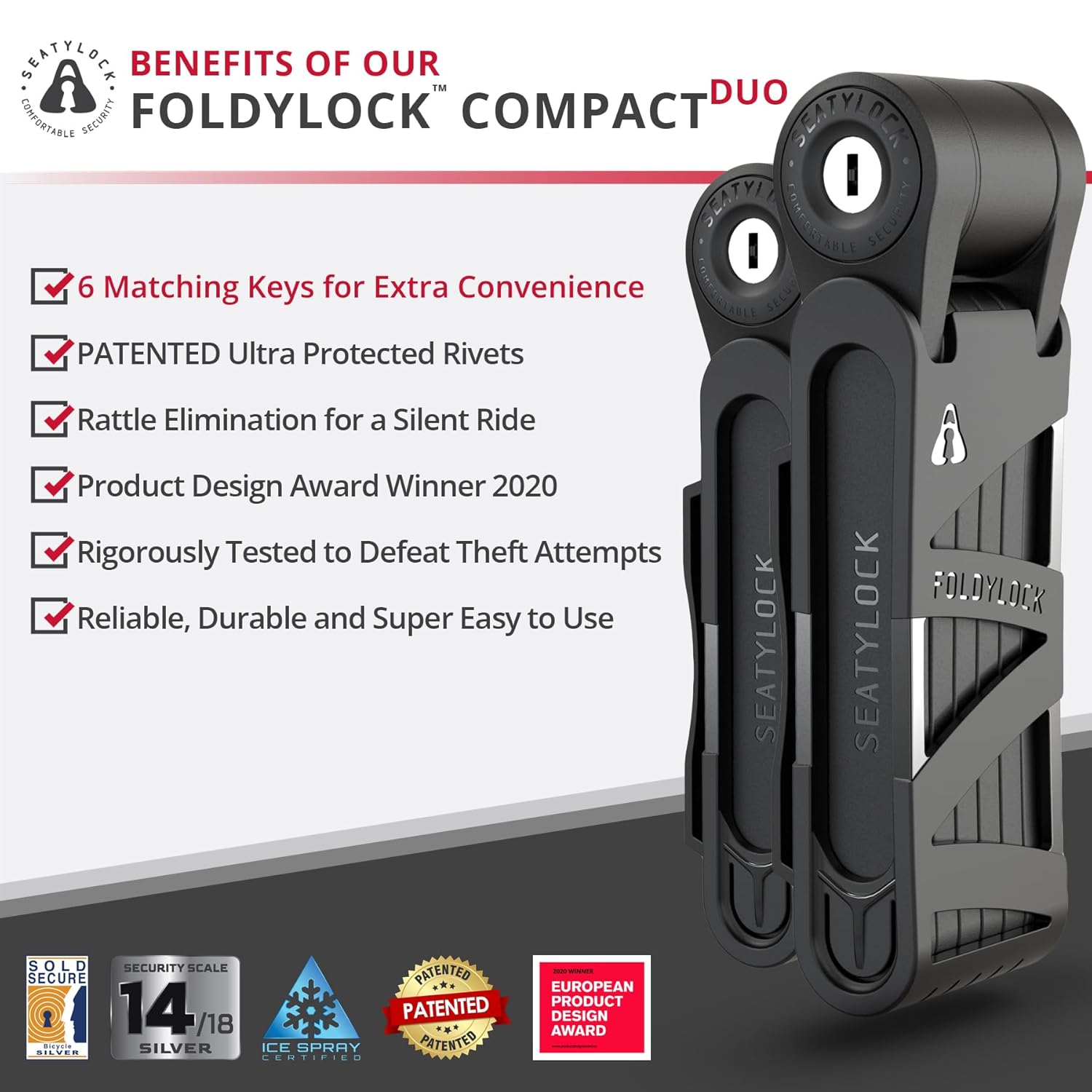 Customer Favorite — discover the Seatylock FoldyLock Compact Folding Bike Locks – Set of 2 Matching Bike Locks with 6 Identical Keys – Patented Lightweight Heavy Duty Anti Theft with Carrying Cases for Bicycles… by Seatylock, built for performance and designed for life in the United States.