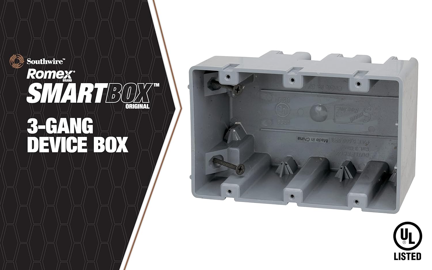 About Southwire Electrical Box for Light Fixture, 42lb Support, Depth Adjustable, Three Gang, Gray, MSB3G