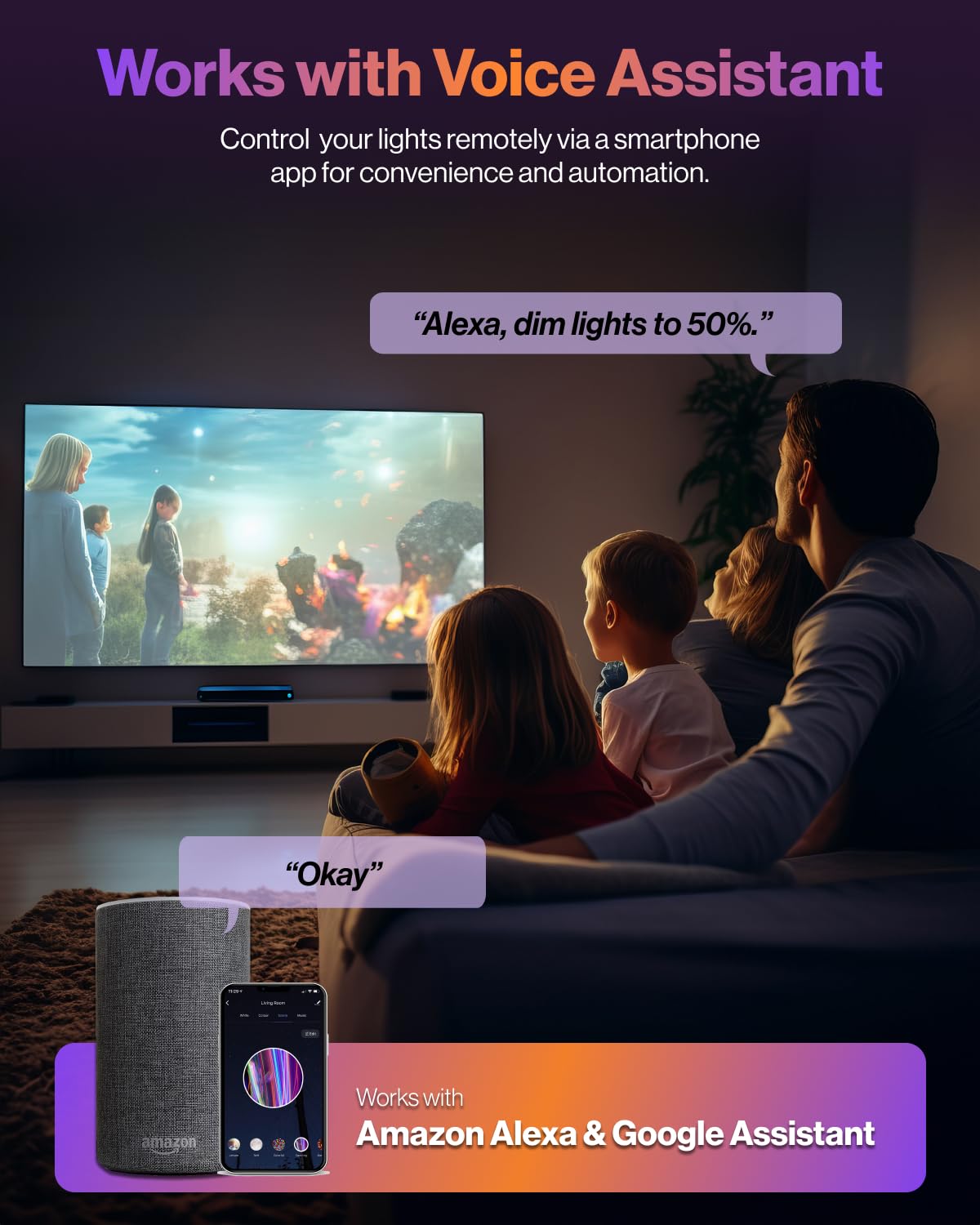 - ✅ REMOTE CONTROL – Control from your smartphone or tablet with the user-friendly Sunco Smart Lighting app. Connect to Amazon Alexa or Google Assistant for voice control to dim, turn on/off or change colors. Control bulbs individually or create different groups to control in unison. You can even bump up the beat and atmosphere with Music Sync, which changes color to the beat of your favorite songs.