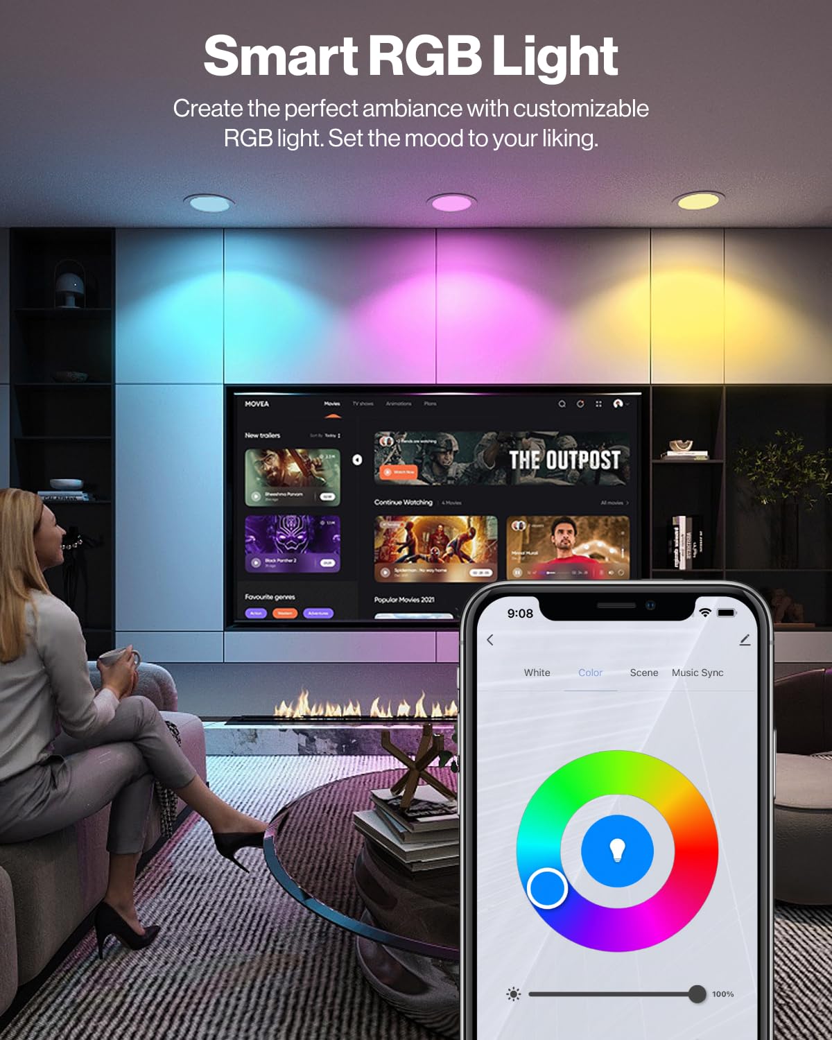 - Top Rated Smart WiFi 6″ Slim Recessed Light, Color Changing (RGB & 5000K Daylight), App & Voice Control