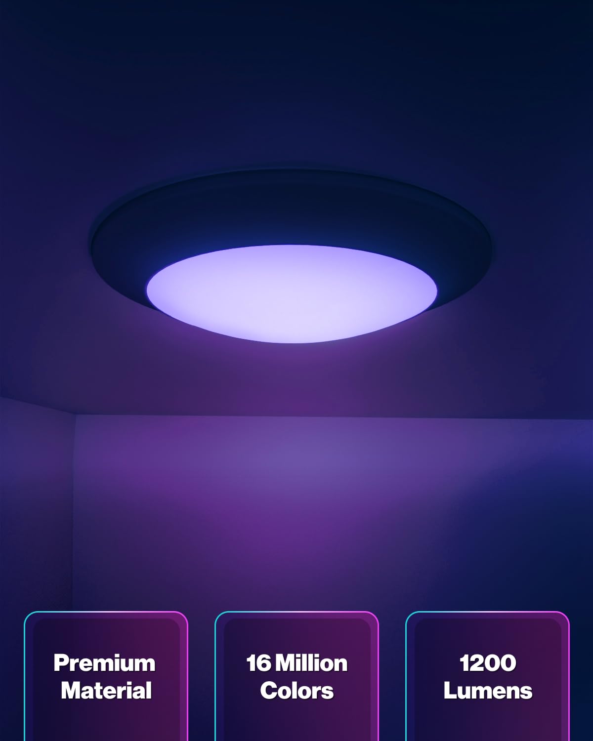These flush mount smart lights combine practicality with style. They are ideal for anyone who likes to alter their lighting to meet their mood or environment because they let you change the brightness and choose from an infinite number of colors using a smartphone app. When you want a combination of functional lighting and vibrant, exciting accents, they look wonderful. In comparison to conventional ceiling lighting, the classic warm or cool white options offer an abundance of brightness that exceeded my expectations. One important factor to take into account is that these lights are controlled by a smartphone app. Although the app makes customization easy, people who prefer real switches or remote controls might not find it appealing. Fortunately, the lights do remember the last used light setting so when you flip the light switch off and on again, it will resume to the last used color and brightness. The requirement to launch an app each time to make a color alteration can be a hassle to some people. This might not be a big deal, though, if you don’t alter lighting settings often, and the functions of the app might feel more like a one-time convenience. An important advantage is that installation is simple and you do not need to be an electrician to set up. After hours of trying, I had one light that refused to connect to the app, which took away from the otherwise satisfying setup. All things considered, these lights excel in their ability to produce vibrant illumination.