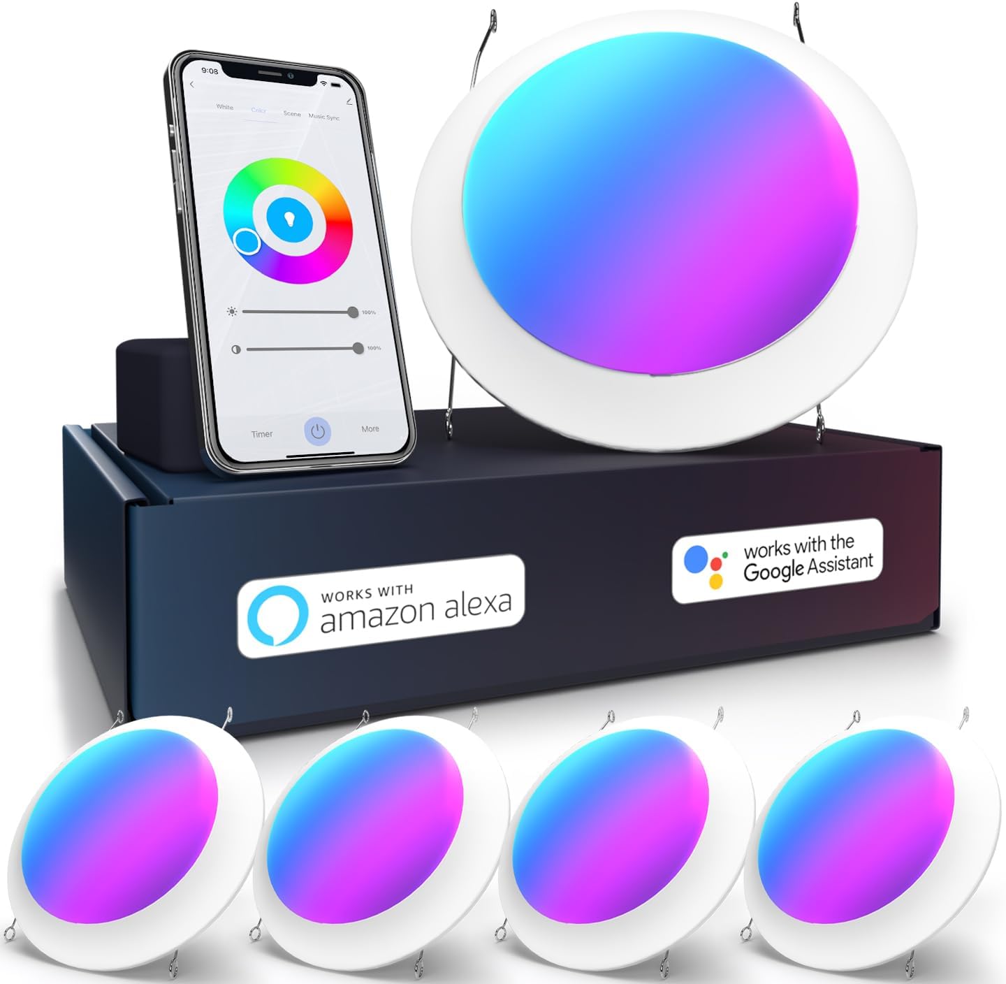 25 reviews for Sunco 5/6 Inch Smart Disk LED Flush Mount Ceiling Recessed Can Light for Living Room, Bedroom, App Controlled Compatible with Alexa and Google, Dimmable, 15W, RGB+5000K… by Sunco Lighting