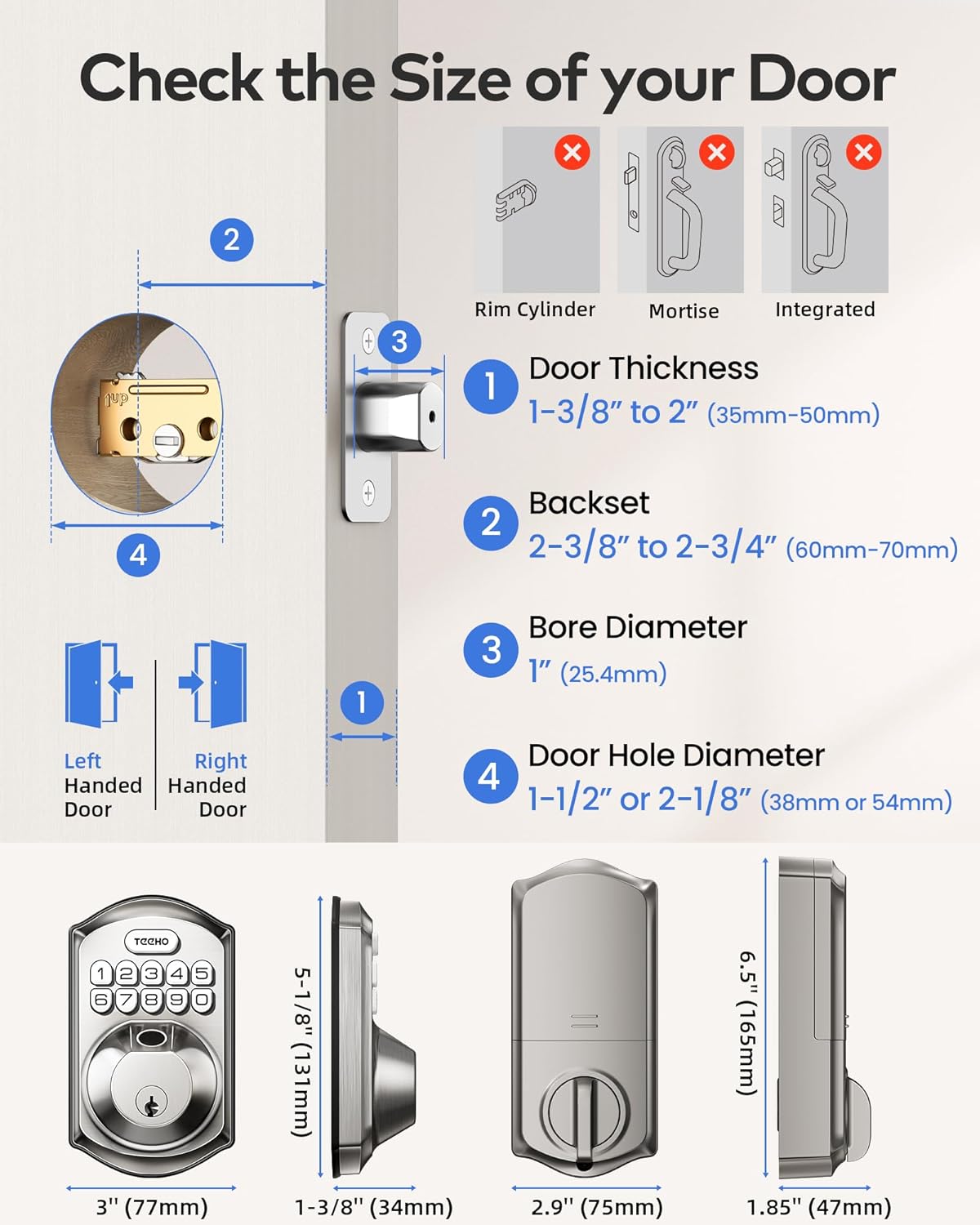 - Advanced Security & Privacy: Built-in protection with lockout for 3 mins after 10 failed PIN attempts. Anti-peep PIN input allows random digits before/after the real code. For Teeho electronic door lock, all data is stored locally and encrypted with AES128 for maximum privacy