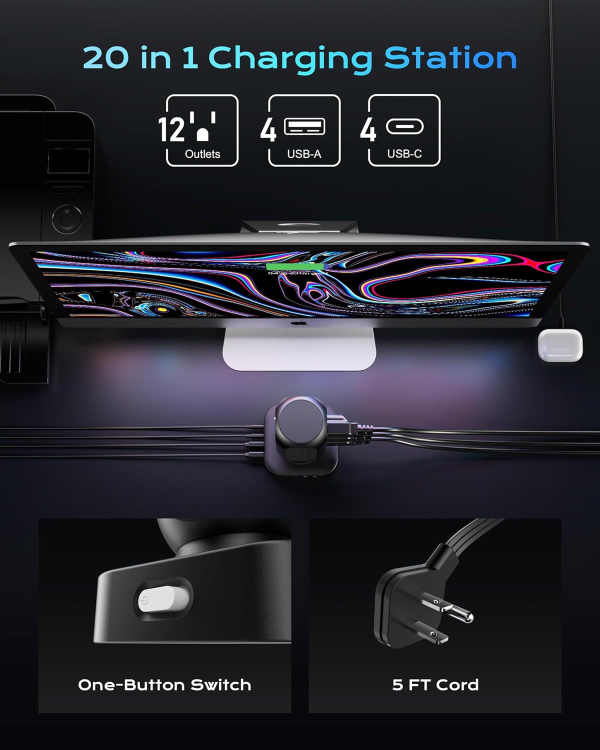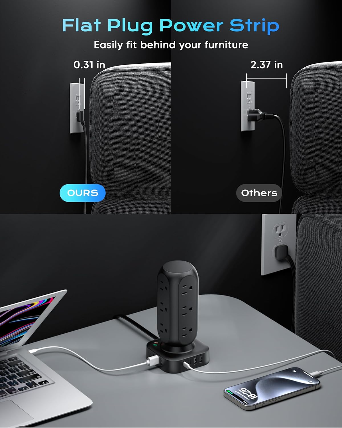 With 12 AC outlets and 8 USB ports (including 4 USB-C), this thing is a charging beast. Everything from my laptop to my toothbrush has a home nowโno more outlet musical chairs. The 10-foot flat plug cord is the perfect length for flexible placement, and the vertical tower design keeps my workspace clean and uncluttered.