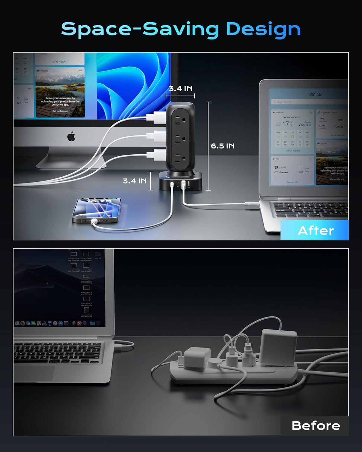 This power strip tower is exactly what I needed to clean up the cable mess in my home office. With 12 AC outlets and 8 USB ports (including 4 USB-C), I can charge all my devices in one placeโlaptop, phone, tablet, smartwatch, and more. The fast-charging USB-C ports are a huge plus and work great with my phone and iPad.