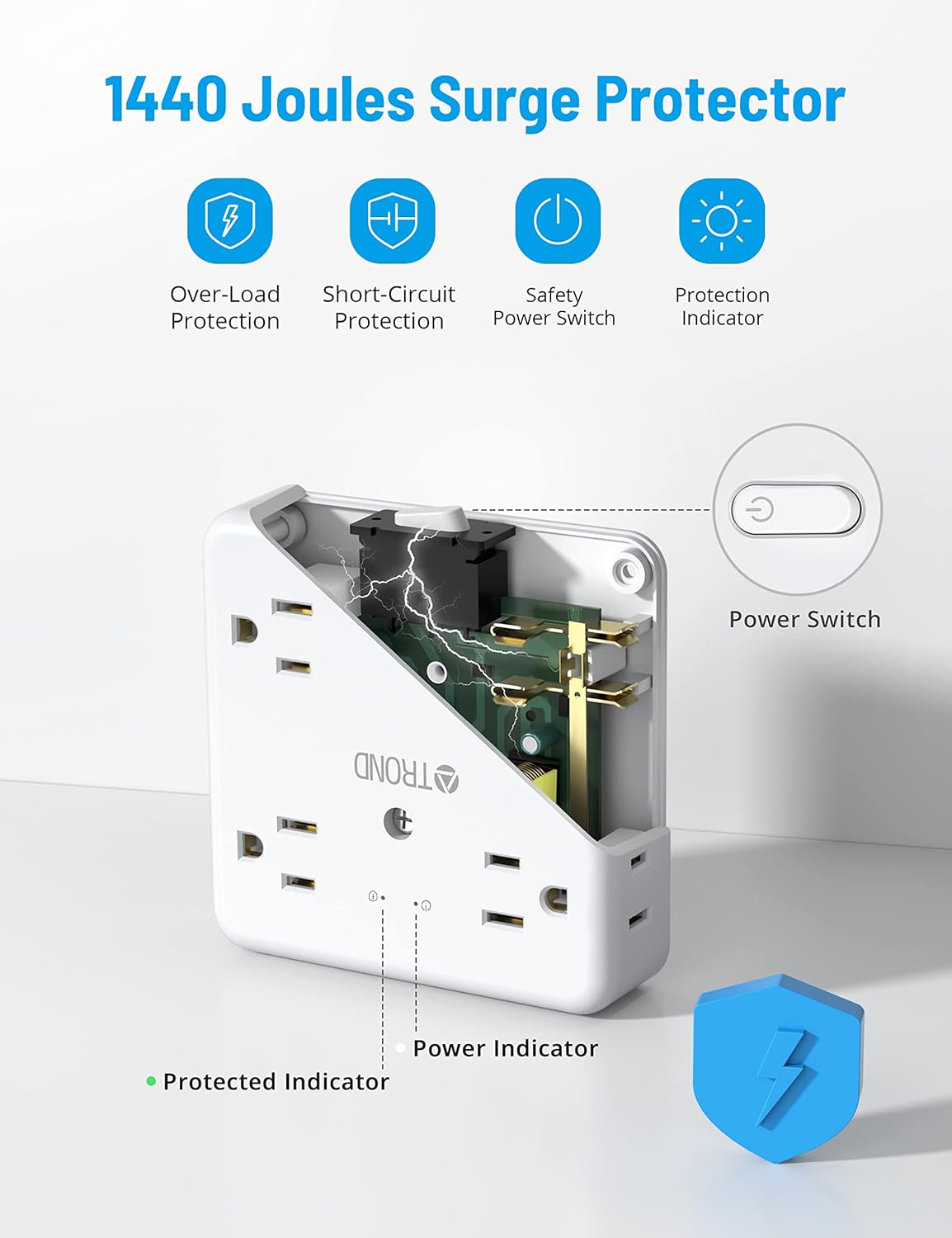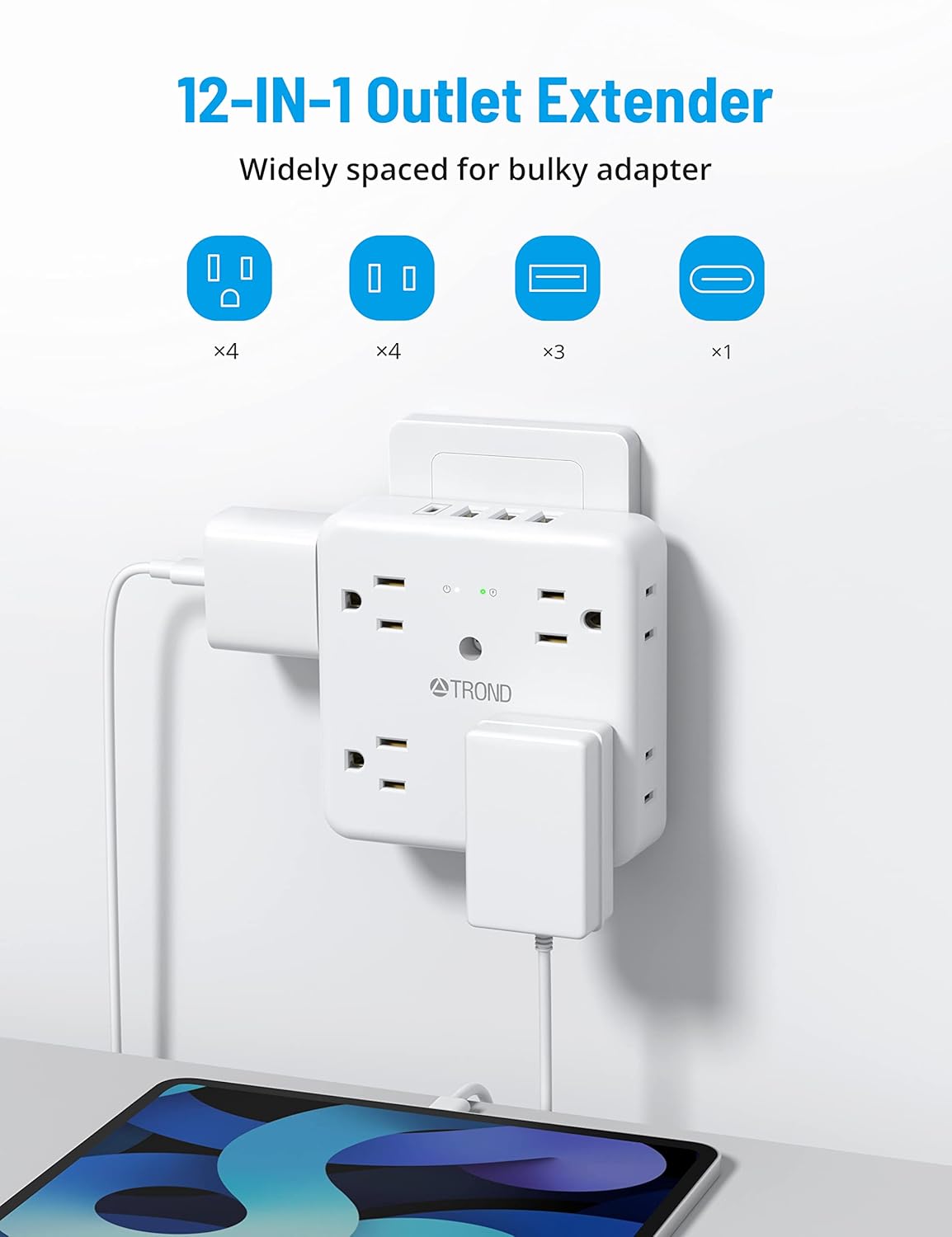 About TROND Outlet Extender Surge Protector, 8 Widely Space Outlet Splitter with 4 USB Ports (1 USB C), Multi Plug Expander with ON/Off, Multiple Wall Plug Adapter for Home Kitchen…