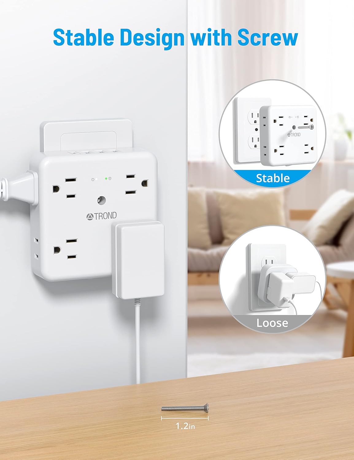- Stable Design with Center Screw: With a wall mounting screw, the plug adapter can be inserted into the duplex outlet stably, and it will stay in the outlet when you unplug something. The thin shell design (1.10” inch) of the outlet splitter makes it easily hidden behind furniture