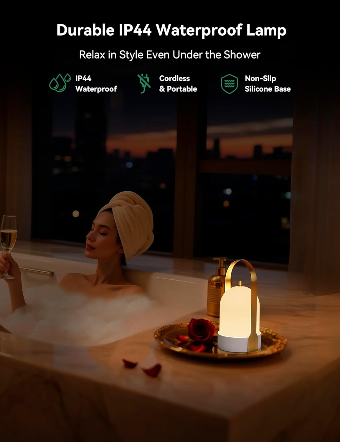 - 【Professional IP44-Certified Waterproof】More than just a waterproof shower lamp, this IP44-certified outdoor cordless LED lantern stays strong even in the rain, offering splash protection from every angle. Its grippy silicone base stays put on the kitchen counter, patio table, camp tables, garage workbench, or right next to a cozy bath. It‘s your go-to outdoor table lamp for any setting