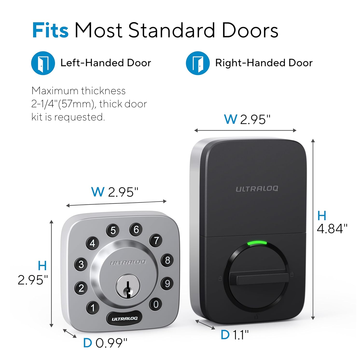 - DIY Installation: Designed to fit any US standard door (1 3/8 to 2 inches thick. 2 1/8 inch face bore hole). No wiring and no drilling.