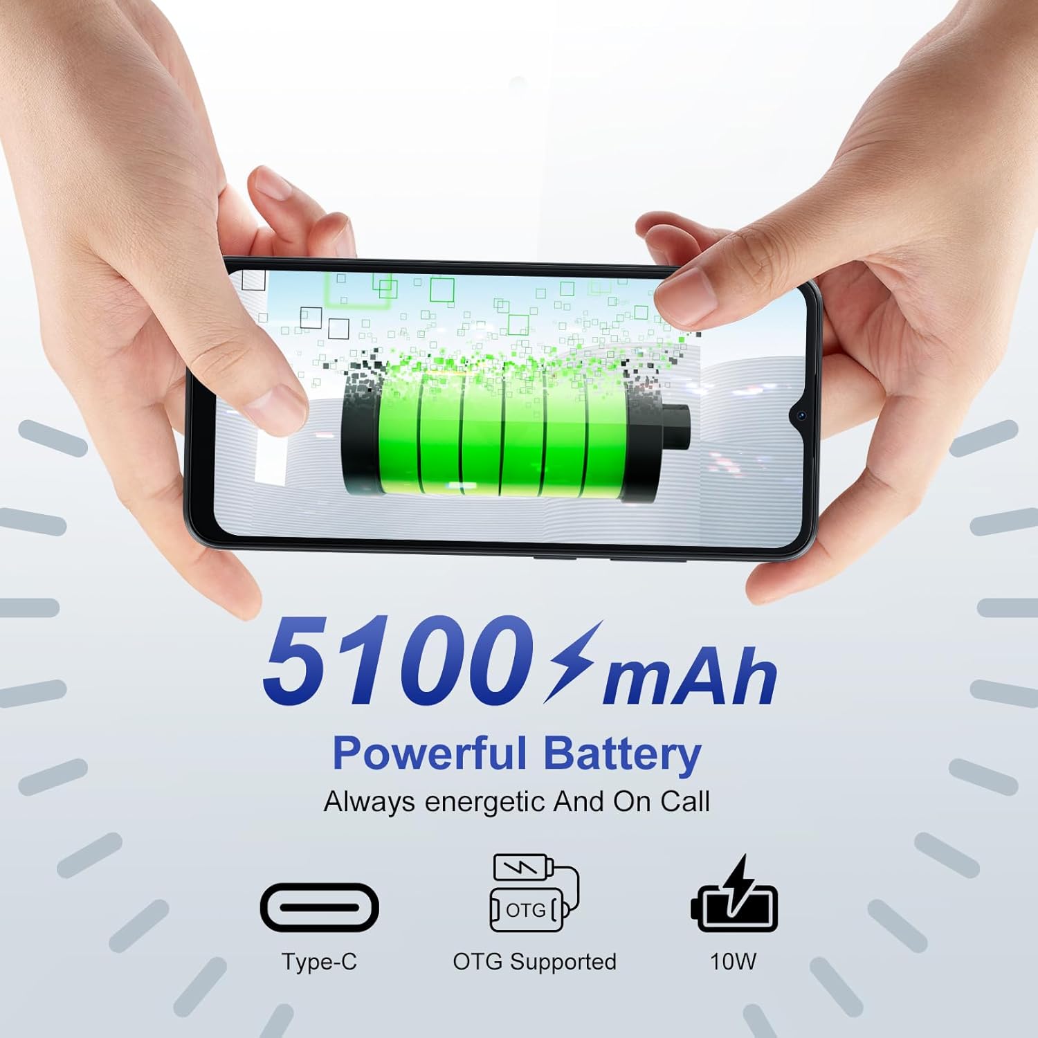 - 【5100mAh Powerful Battery Cellphone】Go from dawn to dusk and beyond with the WAVE 6C’s 5100mAh mega battery. Enjoy all-day worry-free use with up to 7 hours of continuous video or up to 35 hours of music playback or up to 792 hours of standby. Additionally, an improved smart battery system maximizes energy efficiency based on your needs and reduces battery loss by 15%. What’s more, WAVE 6C unlocked phones can also be used as a power bank to charge other devices through the USB OTG function.