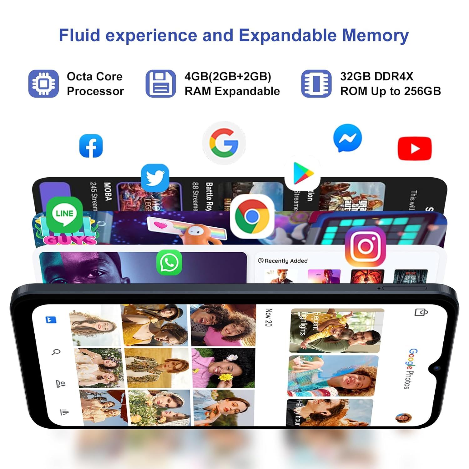 - 【Octa-core Processor & 1TB Expandable】Blackview WAVE 6C android phones is feature an Octa-core Processor, which is capable of running multiple applications and multitasking in a smooth, responsive and efficient manner for your productivity and entertainment needs. WAVE 6C mobile phone uses advanced RAM expansion technology to upgrade RAM to 4GB with just one click, allowing you to run multiple applications at the same time and switch easily. 32GB of built-in storage provides enough space to install apps and store files. The dedicated Micro SD slot supports up to 1TB of external storage.