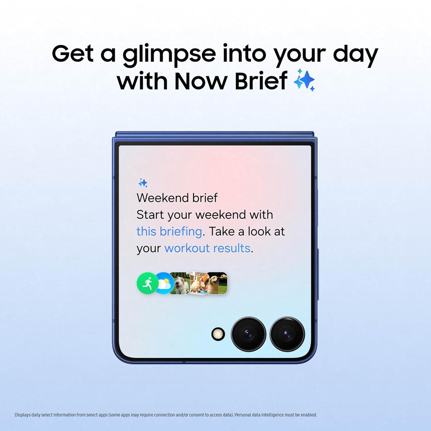 - STAY IN THE NOW: Galaxy Z Flip7 makes it even easier to stay a step ahead of your day. With Now Bar on your cover screen, get quick updates at a glance— like your team’s latest score or your current workout — without even opening your phone.¹