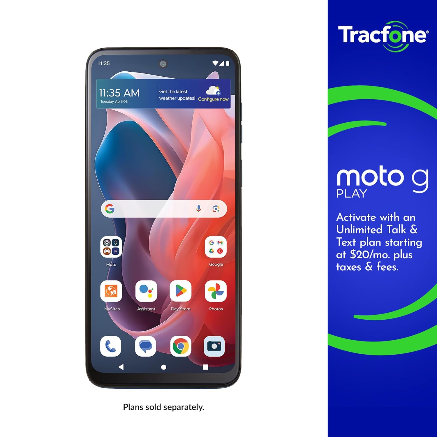 About Tracfone, Motorola Moto g Play 2024, 64GB, Prepaid Smartphone, Sapphire Blue, 50MP Camera, Locked