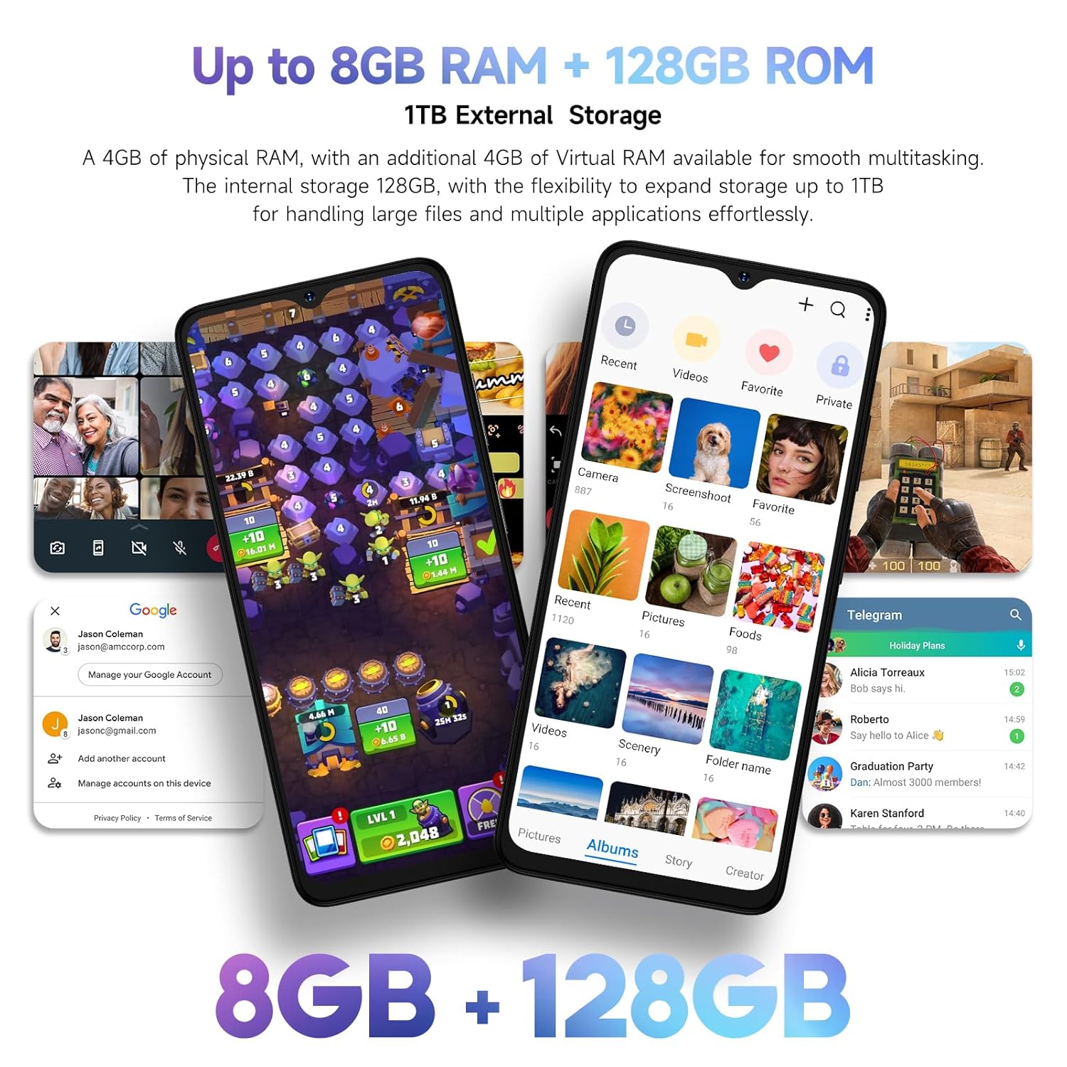 - ใOcta-core Processor, 8GB+128GB/1TB SDใ: The Ulefone Note 21 is equipped with a powerful Unisoc T606 octa-core processor, faster processing, less delay. It has 128GB ROM + up to 8GB RAM (4GB RAM + 4GB virtual RAM) + 1TB SD expansion, making downloading and sharing a breeze.