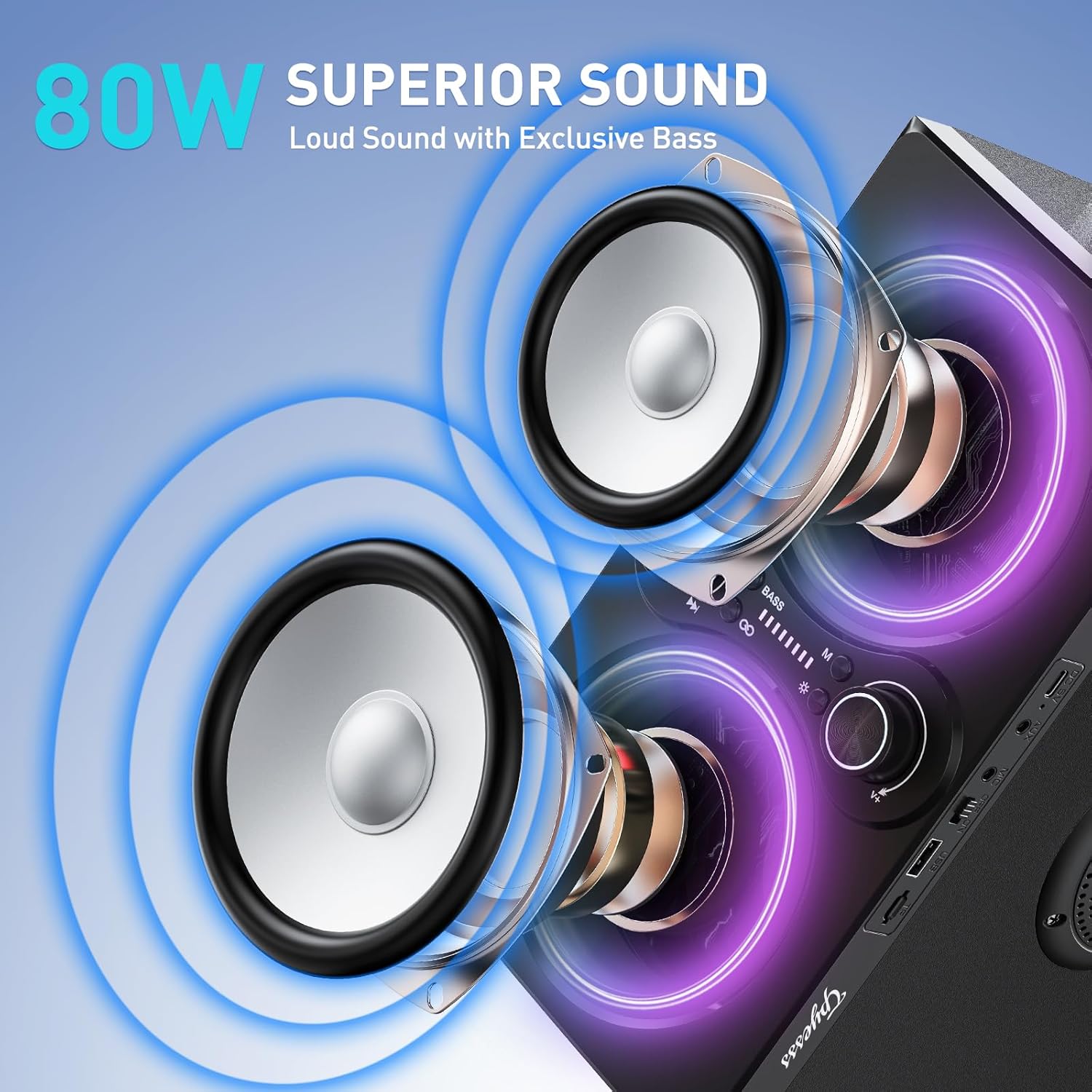 - 【High Power Speaker】Tpyesss Bluetooth speaker comes with 80w (peak) output power and the latest 4 drivers, 2 full-range drivers and 2 tweeter drivers. As a result, Tpyesss bluetooth speakers with subwoofer boasts superior sound projection, ensuring your music, movies, and more come to life with unparalleled clarity and depth, giving you a listening experience like never before.