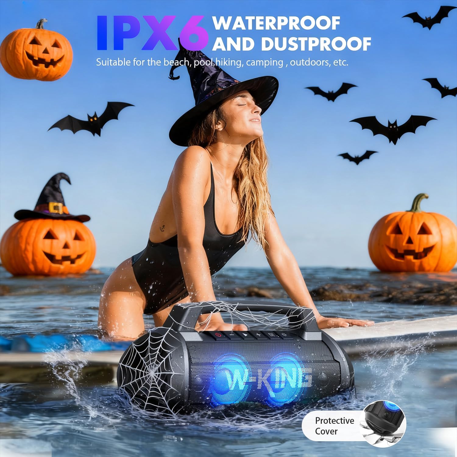 About W-KING Portable Speakers Bluetooth Wireless, 120W Max Loudest Bluetooth Speaker, IPX6 Waterproof Outdoor Speaker with 70W Deep Bass/2*Subwoofer/DSP/EQ/42H/LED/MAC-in/TF/2…