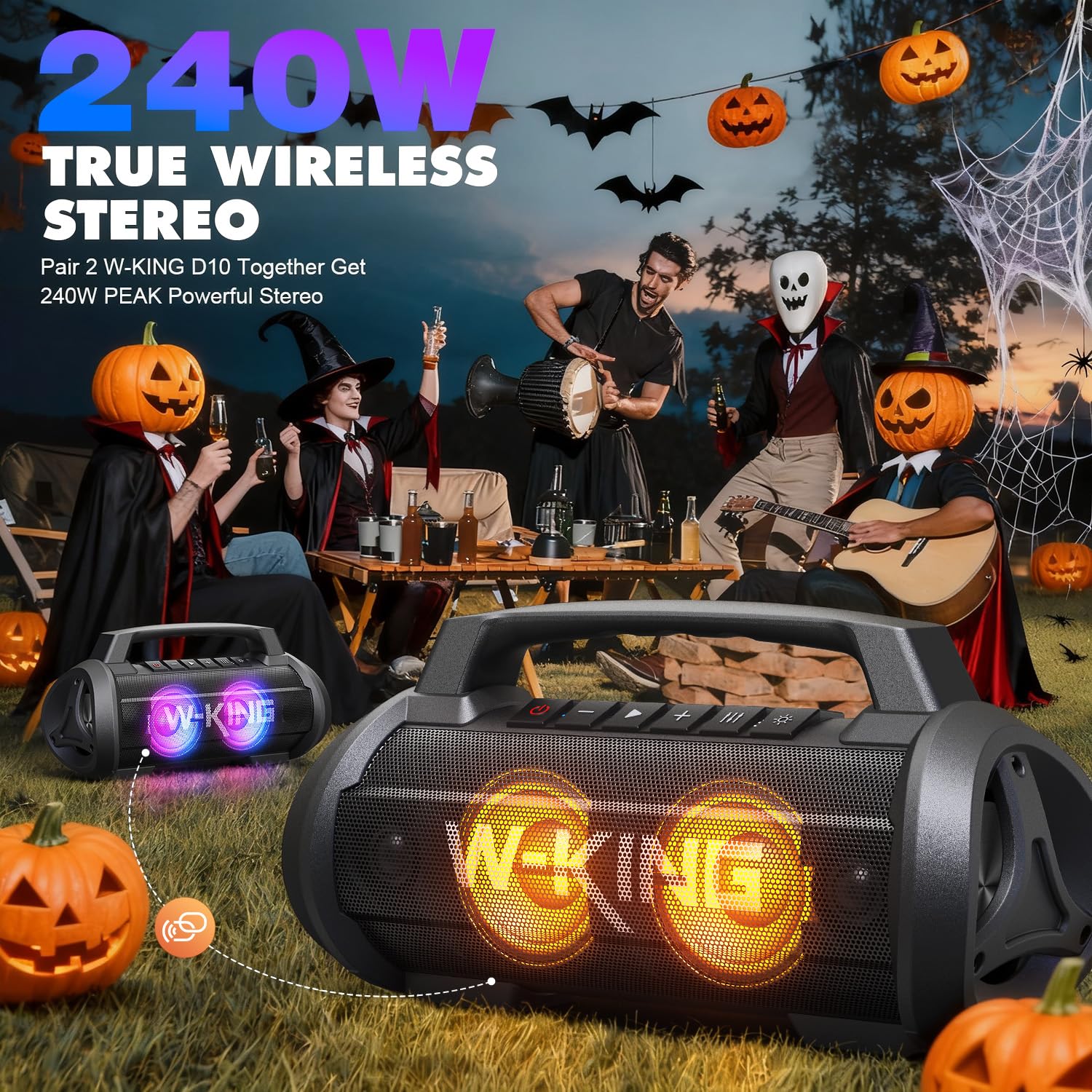 - 120W MAX DYNAMIC RUMNLING BASS & IMMERSIVE SOUND: Euipped with 4 premium drivers, W-KING D10 bluetooth speaker ensures that you hear every nuance of music, from deep bass to crisp highs. 2 large high-power subwoofers deliver deep, rumbling bass to ensure the music feels vibrant and full to give sounds richness and depth. With 2 tweeters, speakers bluetooth wireless produce clear and detailed treble,capturing every subtle high note with precision. The loud speaker is suitable for all music genres