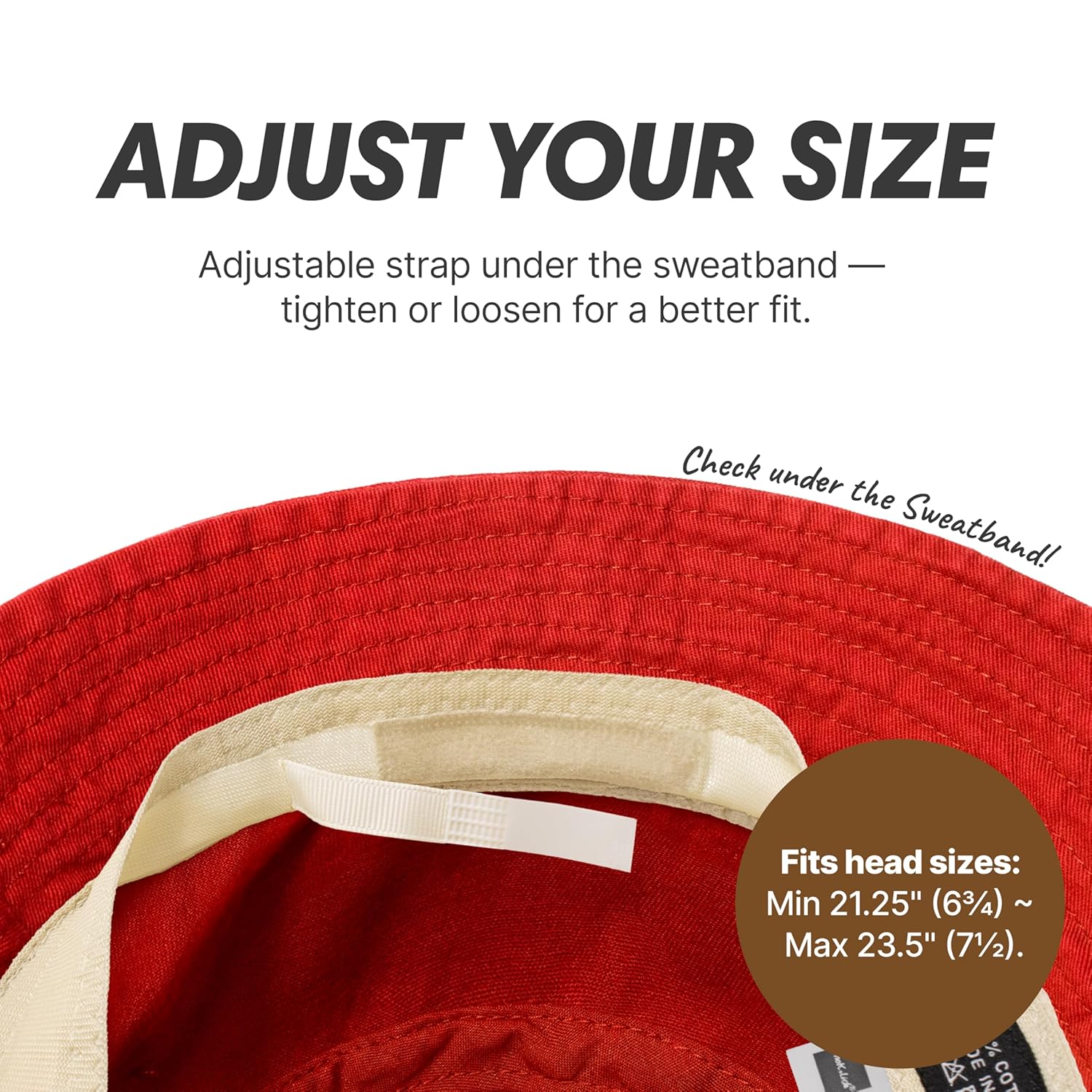 - [ADJUSTABLE COMFORT] – Hidden inside the sweatband is a clever hook-and-loop strap that lets you tighten or loosen the fit. Whether you’re heading to the beach or the city, enjoy a hat that moves with you and never feels off-size.