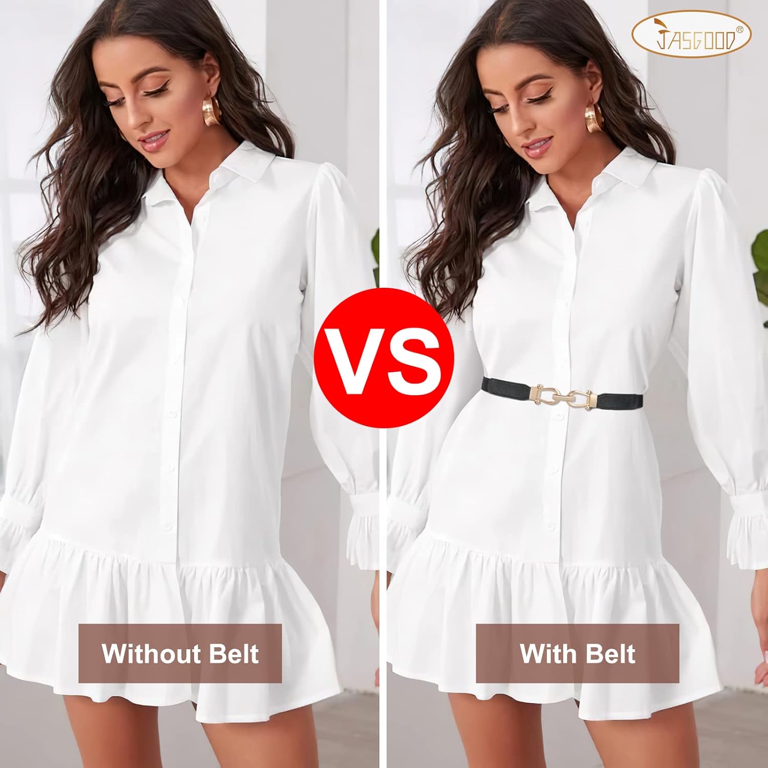 Photos: JASGOOD Women Stretchy Waist Belt Retro Elastic Skinny Belt for Ladies with Gold Buckle by JASGOOD