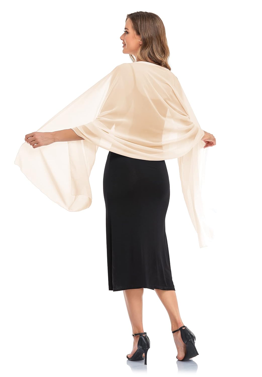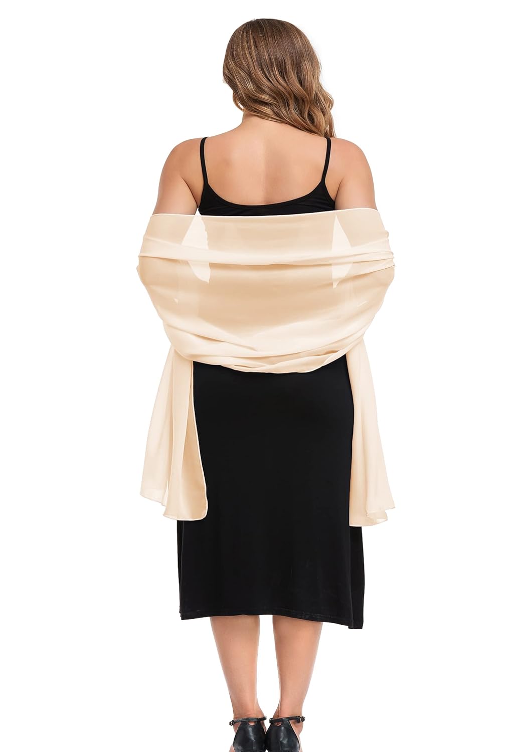 - Two size available, S๏ผ79*18 inches; M: 79*26 inches. Soft and silky off beige chiffon shawl wraps, perfect for spring summer and fall.