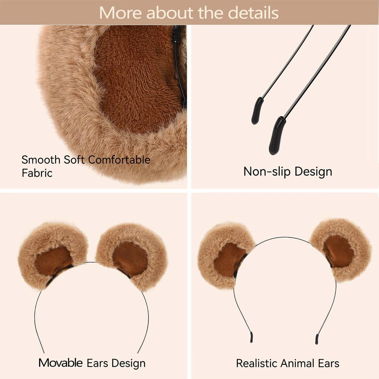 Photos: SIOTMERA Bear Ears Headband Brown, Cute Care Movable Hairband Adult with Toddler Animals Costume, Soft Makeup Head Wear for Washing Face Women by SIOTMERA