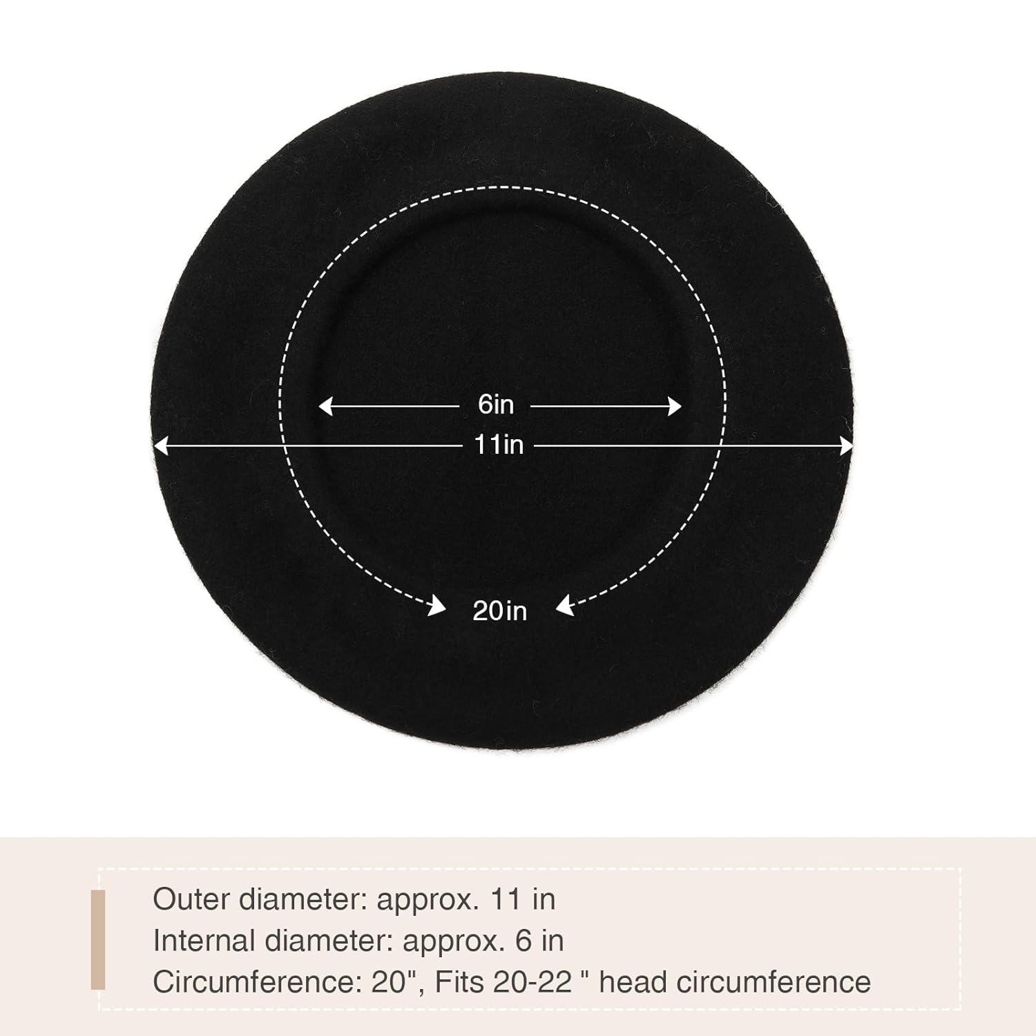 - Beret Size: Recommendation 20-22 in head size ; Beret diameter: 27.5 cm/11 in, inside diameter about 14 cm/6 in