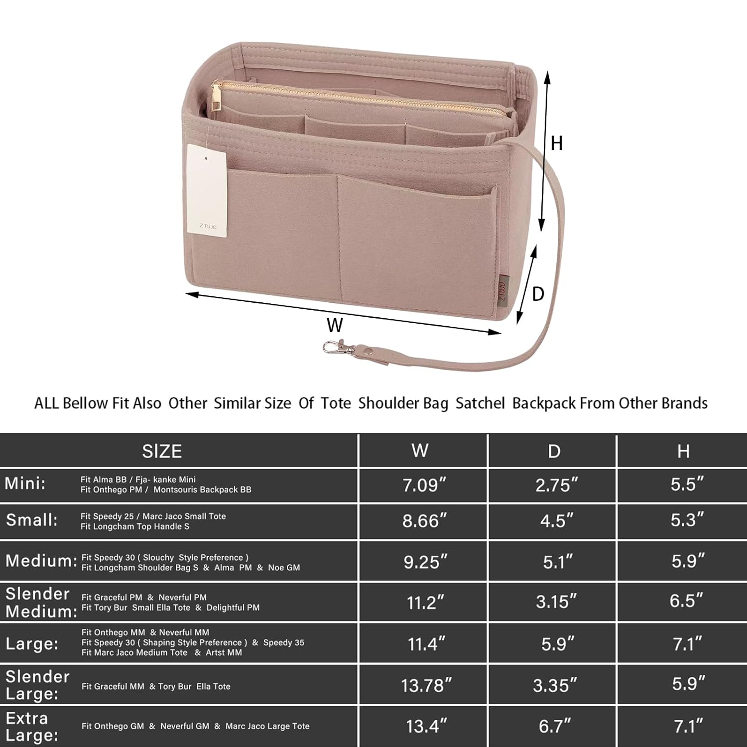 About ZTUJO Purse Organizer Insert, Felt Bag Organizer with Metal Zipper, Handbag & Tote Shaper, For Speedy Neverfull Tote, 7 Sizes