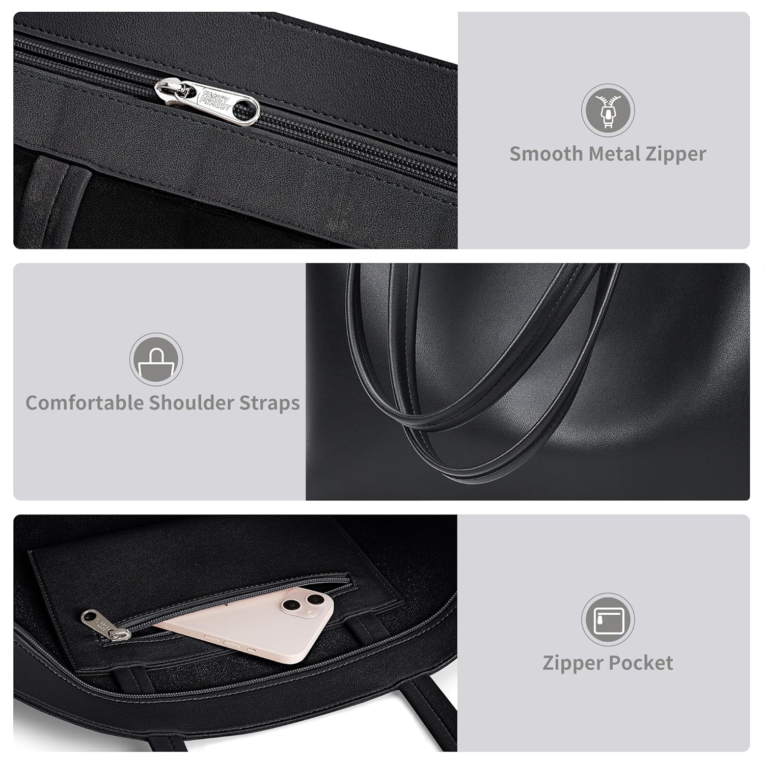 Photos: KALIDI Tote Bag Zipper Shoulder Bag Faux Leather Purses Satchel for Women Casual Handbag Work Dating College by KALIDI FANCY FOREST