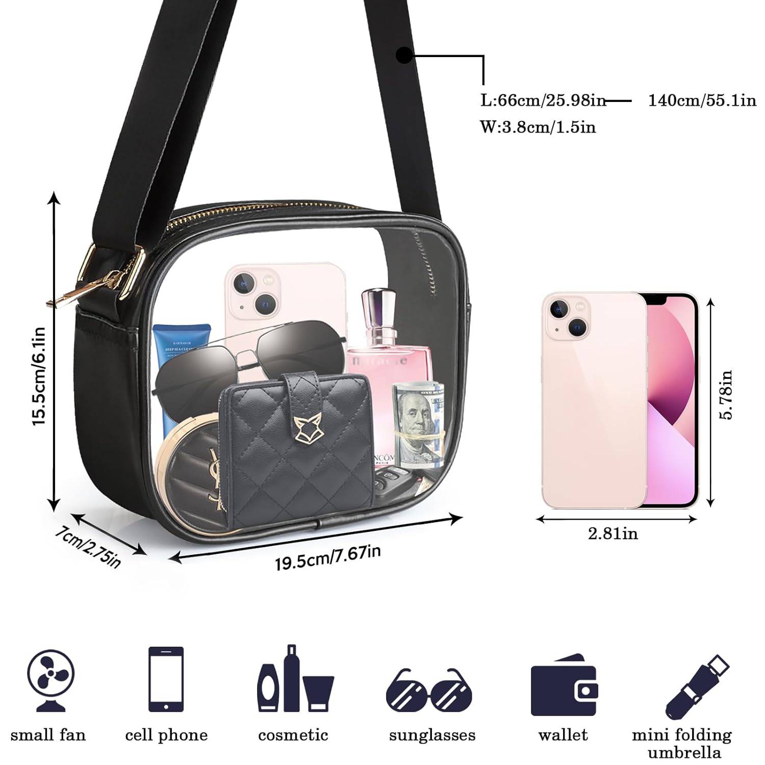 - [ Clear Crossbody Bags for Gift ] Length of strap can be adjusted from 25.98 inch to 55.1 inch, which can be used as a cross body bag for different size men and women. Bring your clear concert bag, free your hands and enjoy your games or concerts! It is the ideal present for any occasion, including birthdays, Valentine’s Day, Mother’s Day, and Thanksgiving.