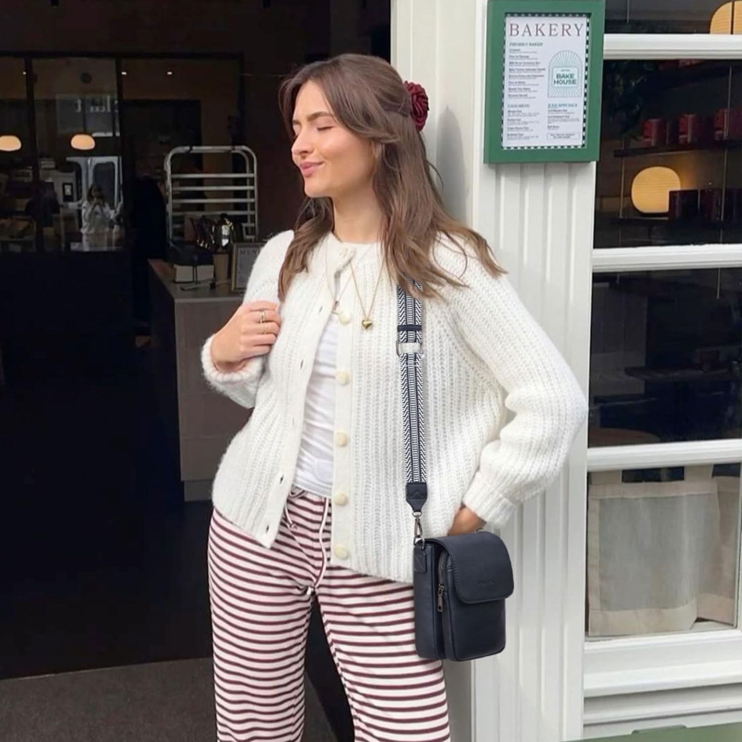 This is my second purchase of this crossbody bag: first cream and brown and now black with brown accent for fall and winter. I simply love this bag. Quality made and perfect size. I have recommended to my friends. Thank you for good work.
