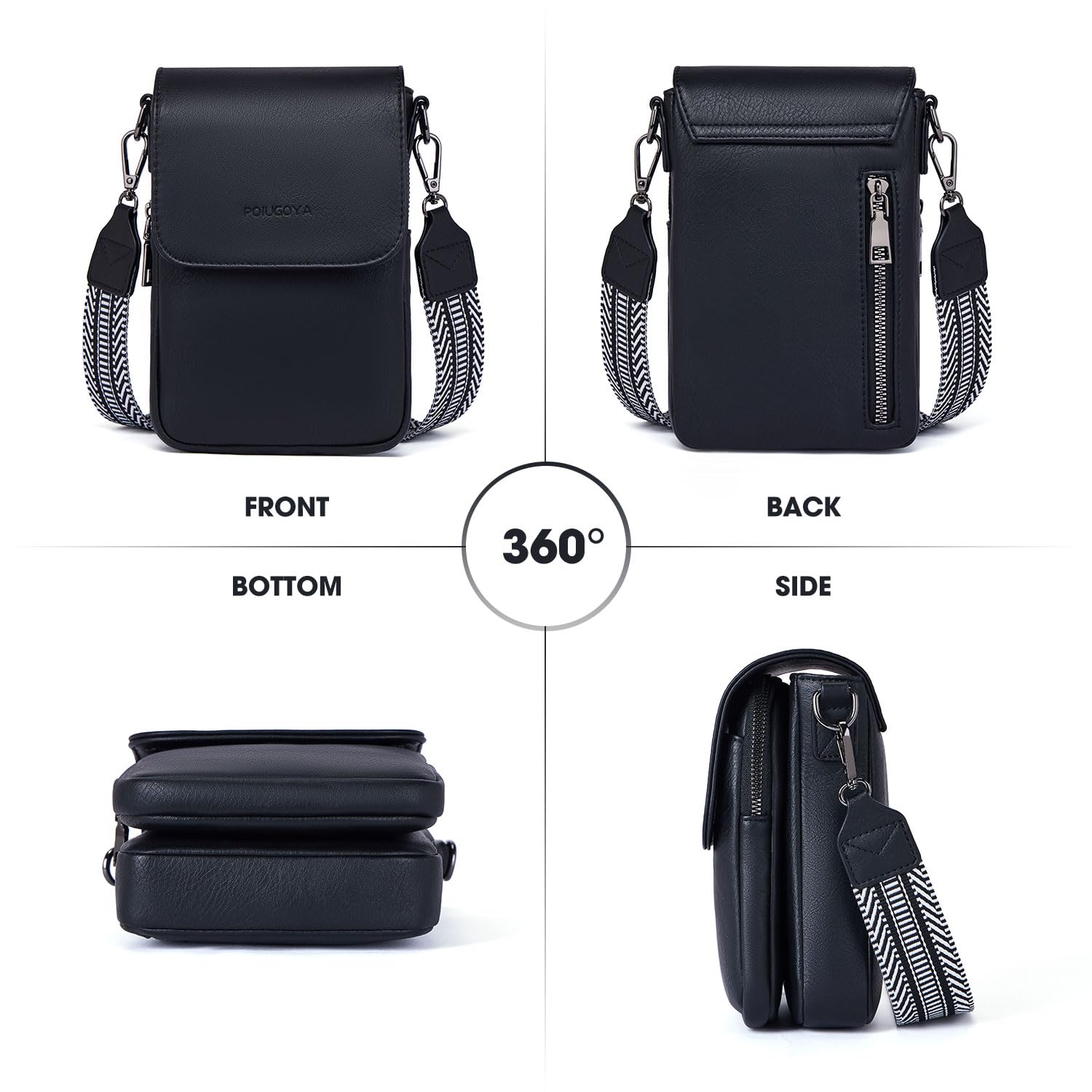 - Soft leather Phone Purse:POIUGOYA Small crossbody bags for women is selected soft vegan leather,feels soft to the touch. With simplistic body, sliver hardware, and front double zipped compartments make this bag practical and functional.This small purse with smooth zipper, no need to worry about getting stuck, keep your phone and items safe.This stylish phone purse is great to carry with you everywhere you go