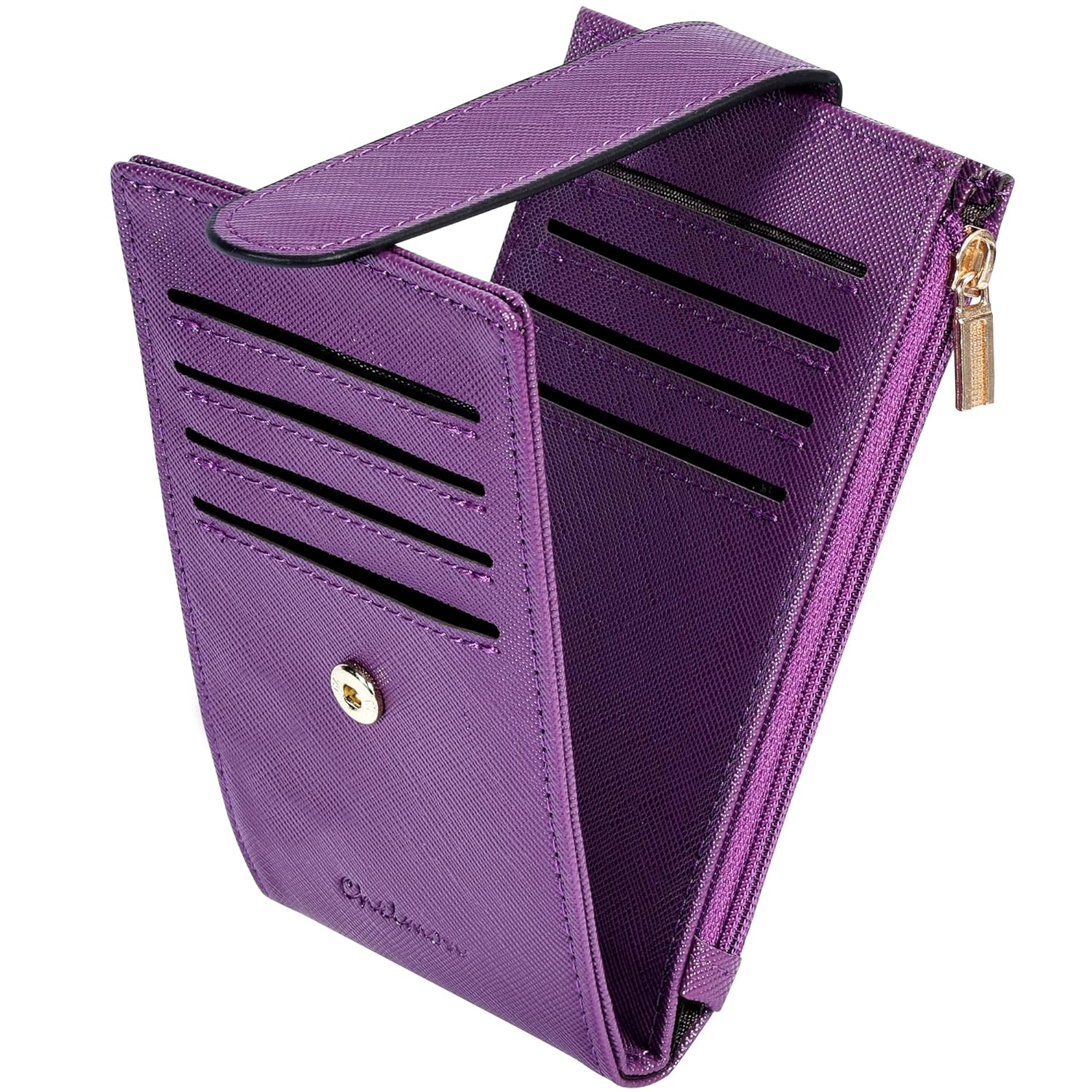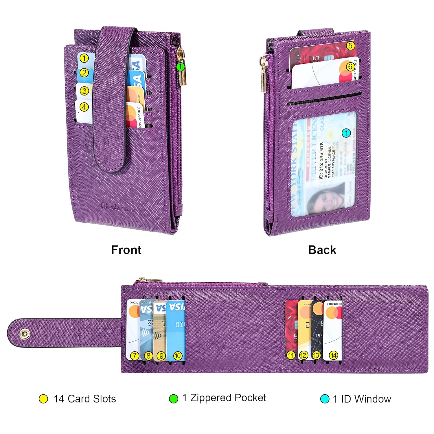 Photos: Women’s RFID Slim Card Holder Wallet: Thin Bifold with Multi-Card Case & Zipper Coin Pocket Purse (Deep Purple) by Chelmon