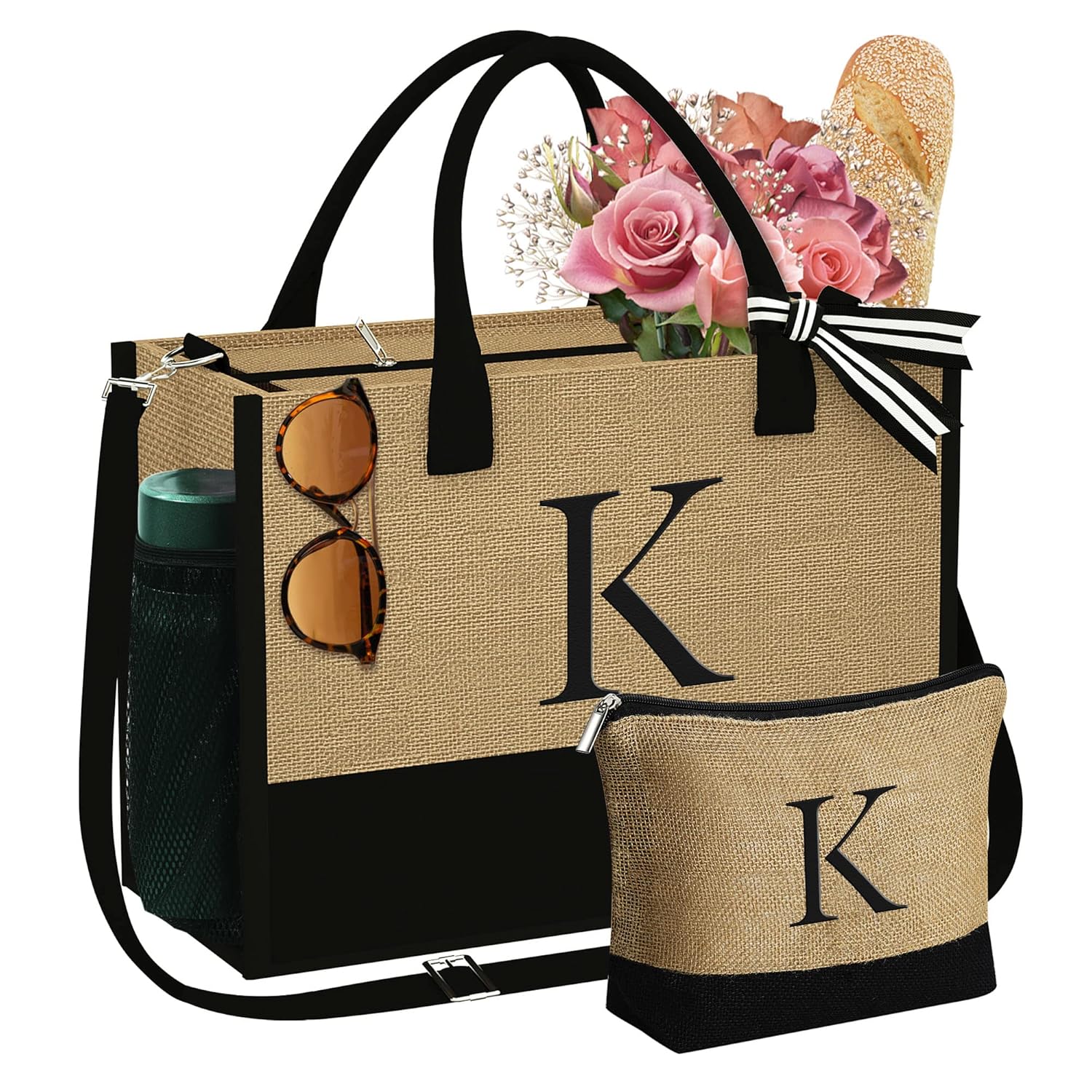 Photos: YOOLIFE Personalized Gifts for Women – Initial Jute Tote Bag & Makeup Bag, Birthday Gifts for Women Mom Wife Teacher Friend by YOOLIFE